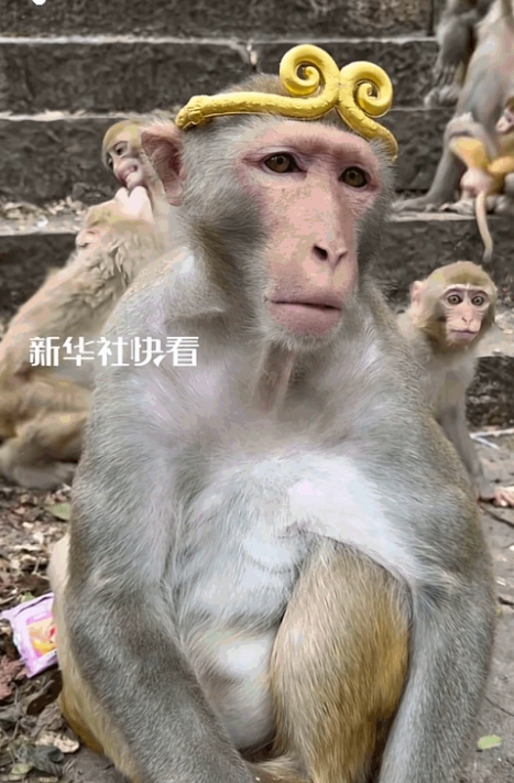 大哥当场笑出声,赶紧掏出手机记录——没戴金箍时,猴子上蹿下跳追着同伴打闹;戴上后,它竟安静蹲在原地,偶尔抬眼望一望天,像在跟十万八千里外的“筋斗云”隔空对话。