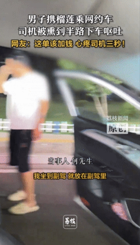 笑发财了!四川内江,一乘客带榴莲坐网约车,刚上车司机就被熏得受不了,时不时把头探出窗外,呼吸新鲜空气,直到快要到目的地时,司机实在是忍不住,被熏得直接半路停车去吐了。网友:这要是不加钱良心过得去吗?