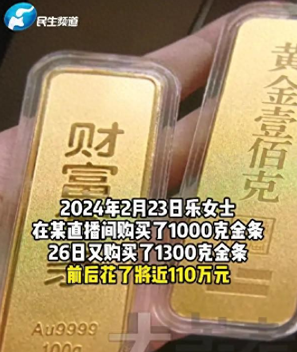 她听身边人说,买黄金肯定赚钱,而且涨得快,于是也想抓住这个机会,她通过一个电商直播间下单,看到商家每克金条只卖478元,比当时的市场价格便宜不少。