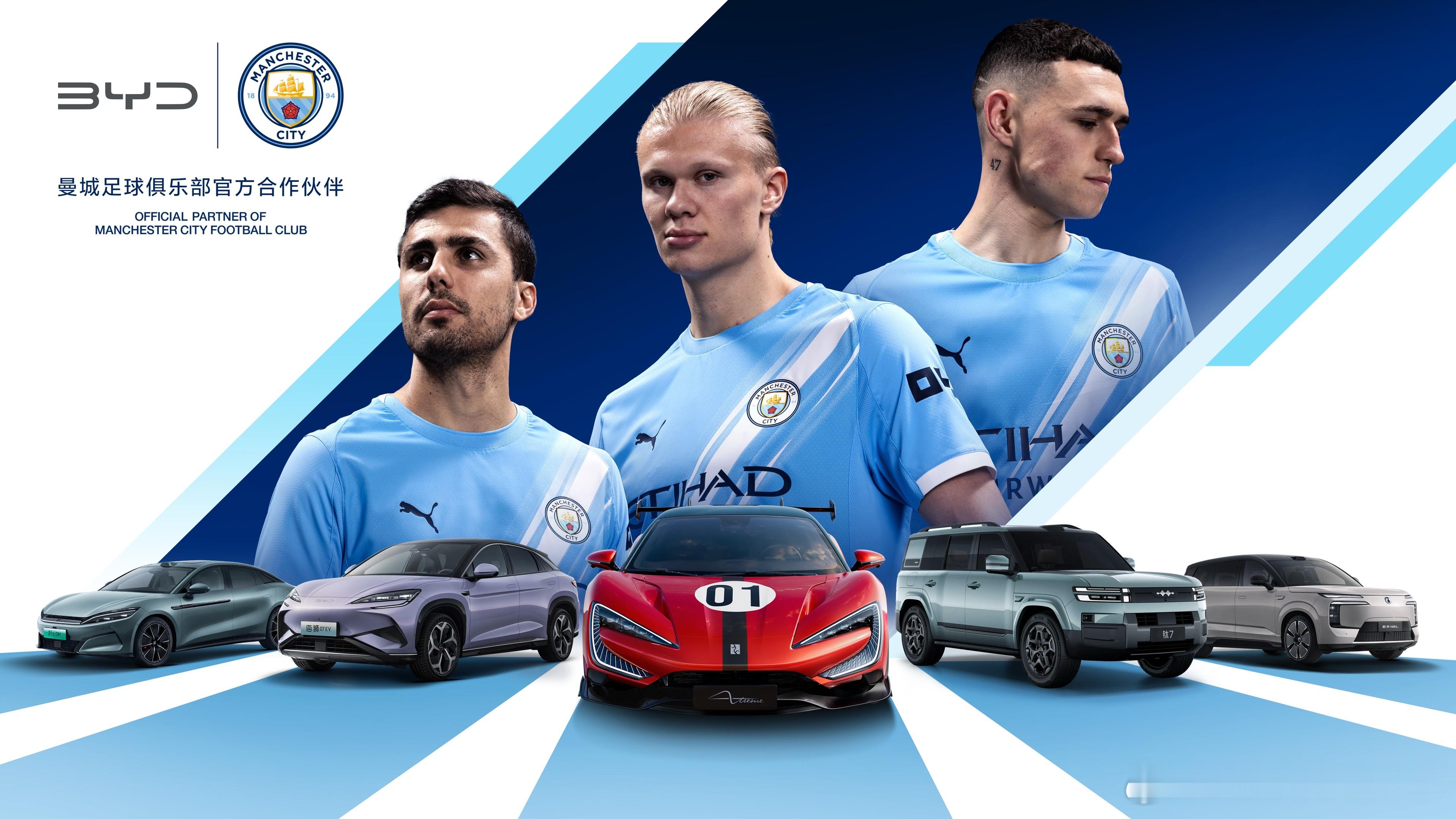 比亚迪成为曼城足球俱乐部官方合作伙伴蓝色风暴席卷全球,绿色足迹遍布世界同一片蓝天下,我们一路向前