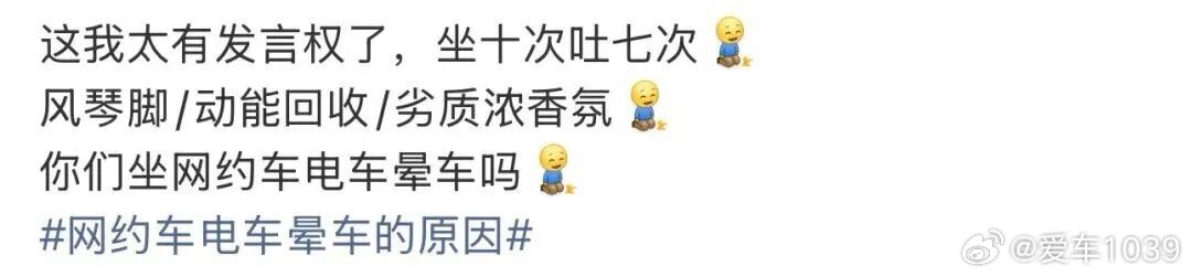 【爱车安全贴士 “网约车电车晕车的原因”引热议!网友:原来不是我的体质差…】经常晕车的人都懂:世界在旋转,胃部在翻涌,一股冷汗从脊梁骨冒出来…如果你恰好在寒冷的冬天,打上了一辆网约车电车,那感觉简直不要太酸爽。近日,关于“网约车电车晕车原因”的话题冲上热搜,引发无数网友热议。网页链接