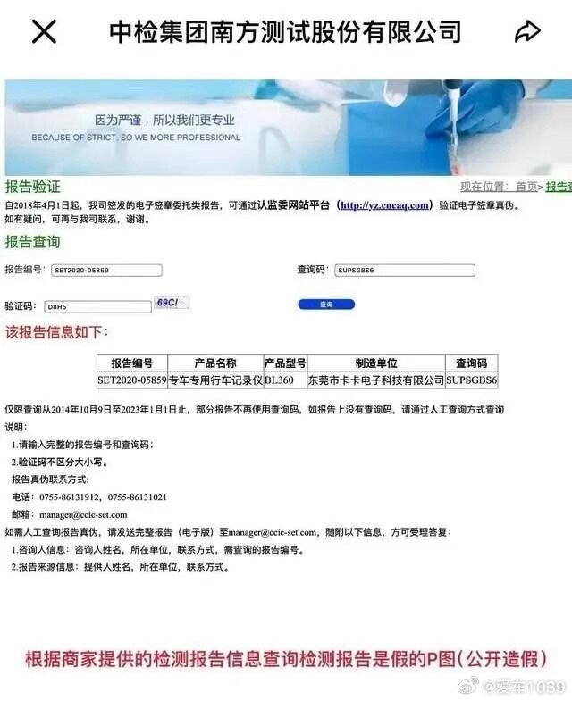 【爱车安全贴士网购行车记录仪发现质量问题,商家疑似提供P图的检测报告? 】孙先生在网购平台购买了一台行车记录仪,发现质量疑似存在问题,要求商家提供产品合格检测证明,不料商家却提供了一份疑似P图的检测报告。孙先生多方反映维权近一月,商家和平台先是给出退货和百元补偿券,最终商家同意十倍赔偿,但货物真假的关键问题却始终没有定论。网页链接
