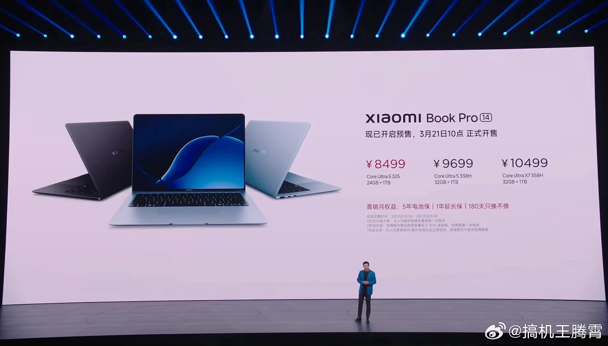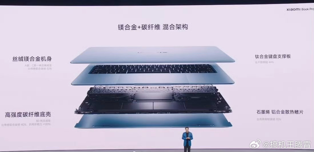 小米发布会小米的新本子Xiaomi Book Pro 14来了,镁合金机身,1080g重,高强度碳纤维底盖,高搭载第三代英特尔酷睿Ultra X7 358H处理器,50W性能释放,双动翼双风扇,14英寸的OLED屏幕,3:2屏幕比例,120Hz高刷,2160Hz高频PWM调光,72Wh电池 + 100W快充,厚14.95mm、重1.08kg,Ultra 5 325 24 + 1TB版售7999元起(国补完6799元起)。