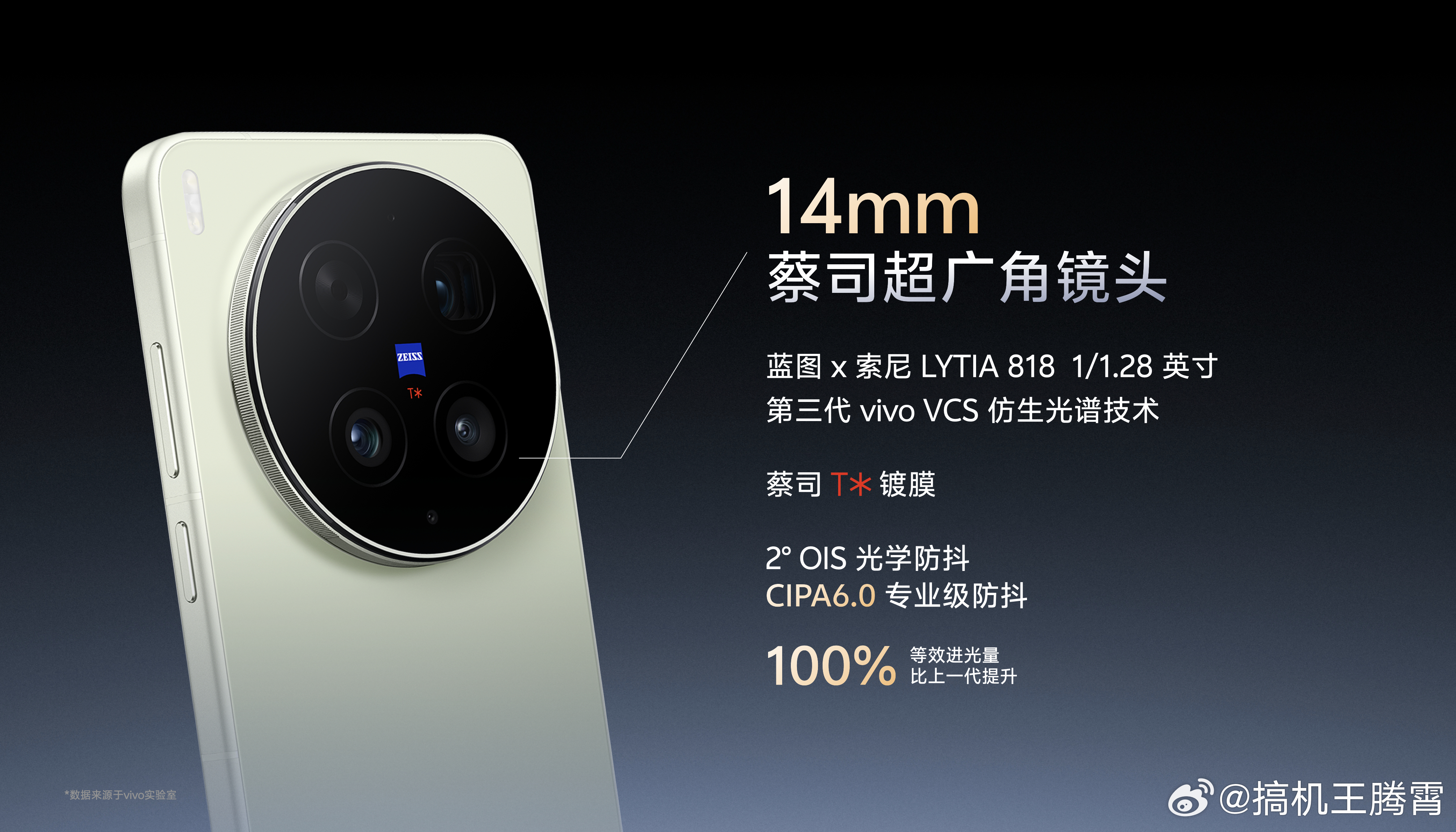 趁着vivo X300 Ultra还没发,蓝厂又按惯例搞了场影像技术沟通会。这次提供了3 + 2蔡司镜头群,首发蓝图 × 索尼LYTIA 901,1/1.2英寸,2亿像素,单像素感光面积提升30%,满阱容量提升32%,超广角是蓝图 × 索尼LYTIA 818,1/1.28英寸,内置第三代VCS仿生光谱技术,防抖等级达到CIPA 6.0,长焦方面是2亿像素三星HP0,1/1.4英寸,行业内首个大底云台级防抖潜望,达到了CIPA 7.0,那么也就是说,主摄长焦双2亿。