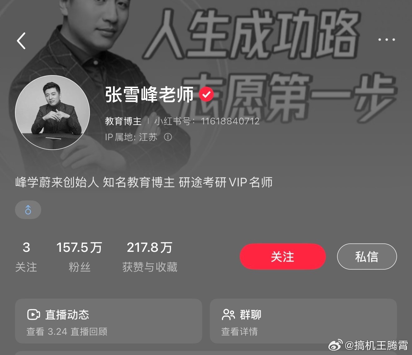 张雪峰头像哎,看来张雪峰还是没挺住,看了眼隔壁平台头像都变黑白了,目前官网也变了,真是世事无常,身体才是革命的本钱,赚再多钱没健康也白搭,这年头平安健康比啥都强,大家千万要保重身体