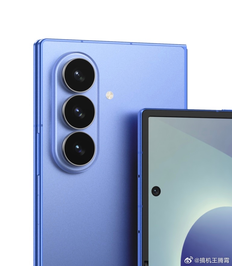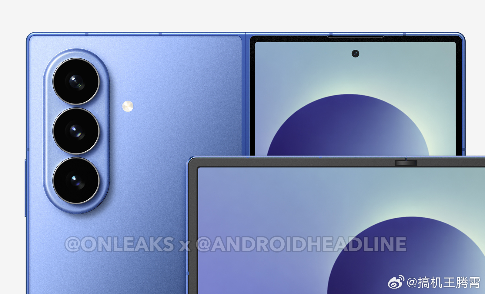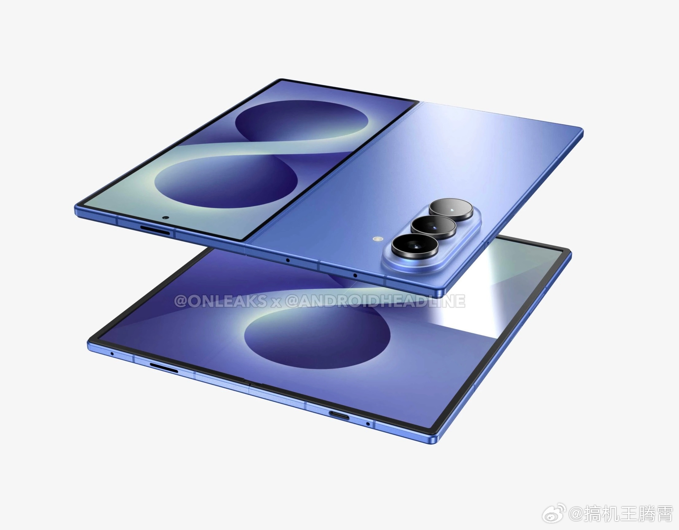 【三星Galaxy Z Fold8渲染图曝光】相较上代外观没啥太大变化,依旧6.5英寸外屏 + 8英寸内屏,背部还是矩阵竖排三摄,亮点是电池终于来到5000mAh(上代4400mAh),并且支持45W快充(上代25W),这就导致机身反而更厚了,闭合状态9mm厚、展开状态4.5mm厚,国产大折电池都7打头了,你们觉得咋样?