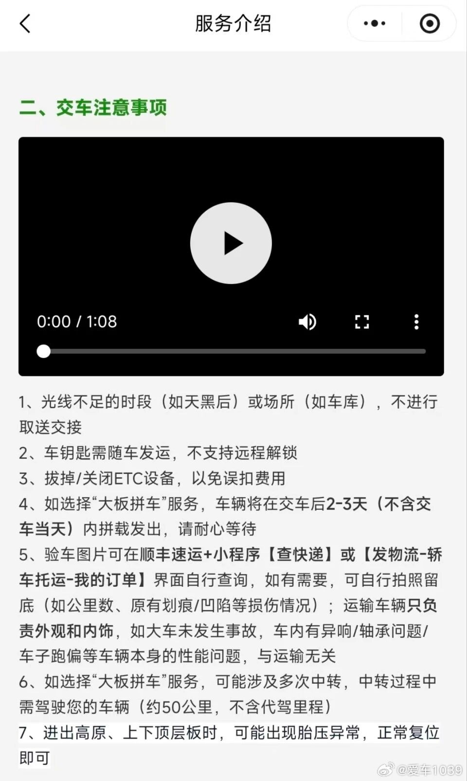 【爱车安全贴士 汽车也能快递到家了?800公里运费近2000元,提示:需拔掉/关闭车辆ETC设备】春光明媚,正是举家自驾出游的时刻,但经过长途颠簸,返程回家颇感疲惫。近日,有网友发现,自驾的车辆也可以通过顺丰“快递”回家了。极目新闻记者采访了解到,轿车托运的时效和价格,按系统计算的。记者通过顺丰小程序查询,800公里路程费用近2000元。网页链接