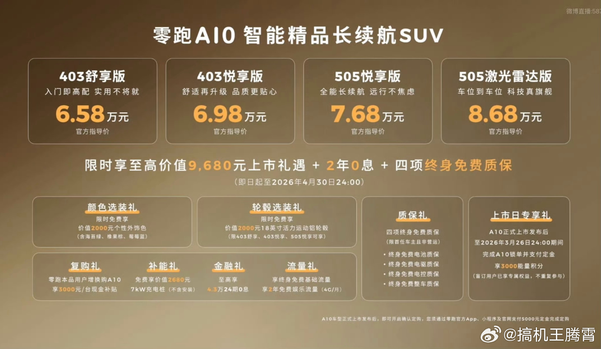 零跑A10开启激光雷达8万时代零跑A10正式发布了,零跑的小车,外观采用了科技自然美学2.0设计语言,前脸多边形大灯和多边形尾灯相呼应,海苔绿、橡果棕、莓莓蓝、苔原灰、星河银、摩根粉6个颜色。智能化方面8295座舱芯片 + 8650辅助驾驶芯片,离谱的是这车有激光雷达,车内8.88英寸液晶仪表 + 14.6英寸中控屏,还接入了千问AI大模型,搭载“超级小零”智能助手,智能化体验更好。