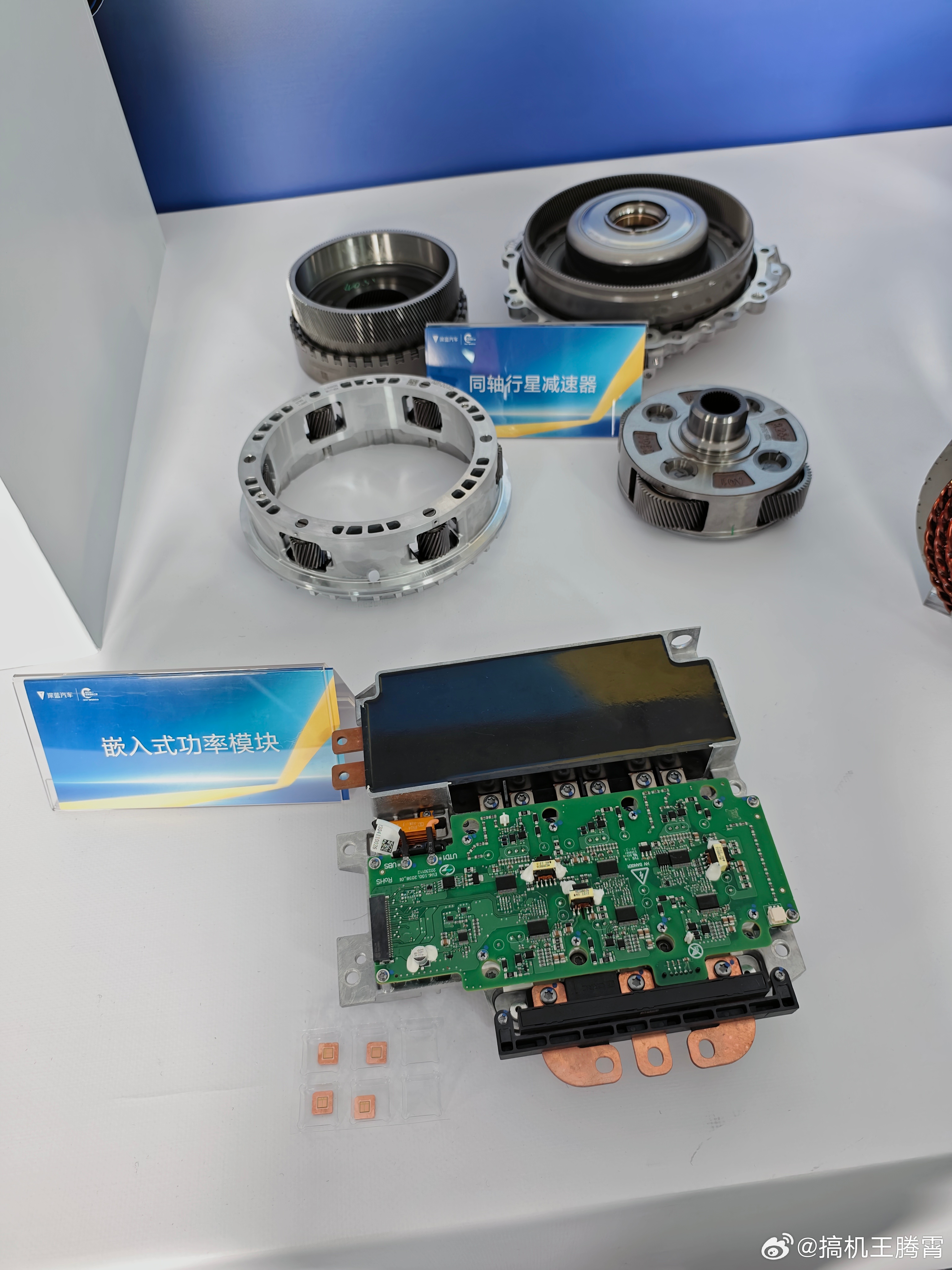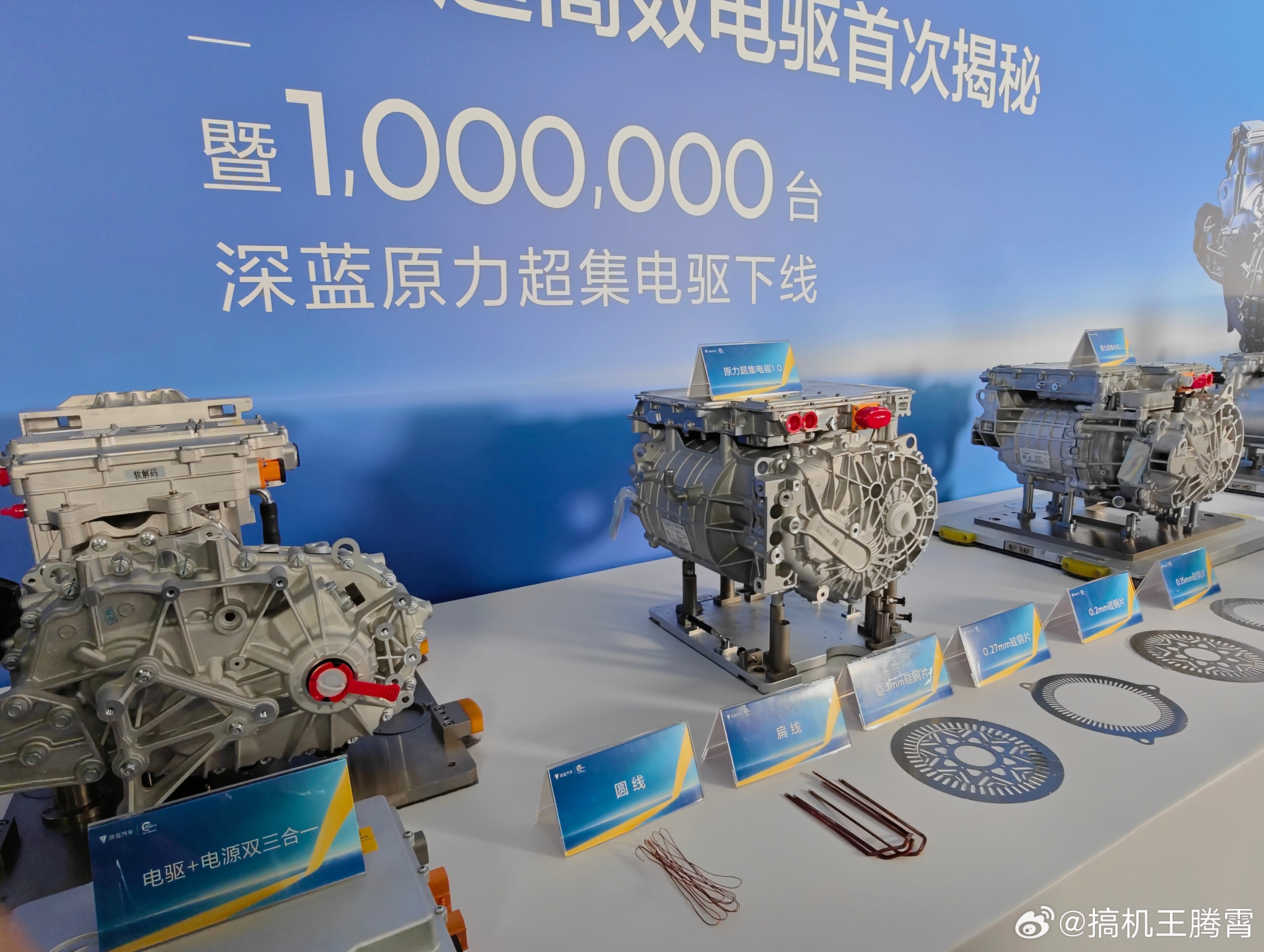 伴随体积重量不断缩小,以及功率密度的提升,现在深蓝已经量产了全球最高效的电驱,系统总成工况效率达到了94.13%,全球第一,确实强。现场摸到了深蓝的原力超集电驱2.0,12寸晶圆、IGBT模块、塑封功率模块、UX-pin扁线电机全给拆出来了,非常精密,不过新一代原力超集电驱会更强,坐等下午深蓝汽车第100万台电驱下线揭晓,据说邓工还要现场直接拆行驶超50万公里的电驱