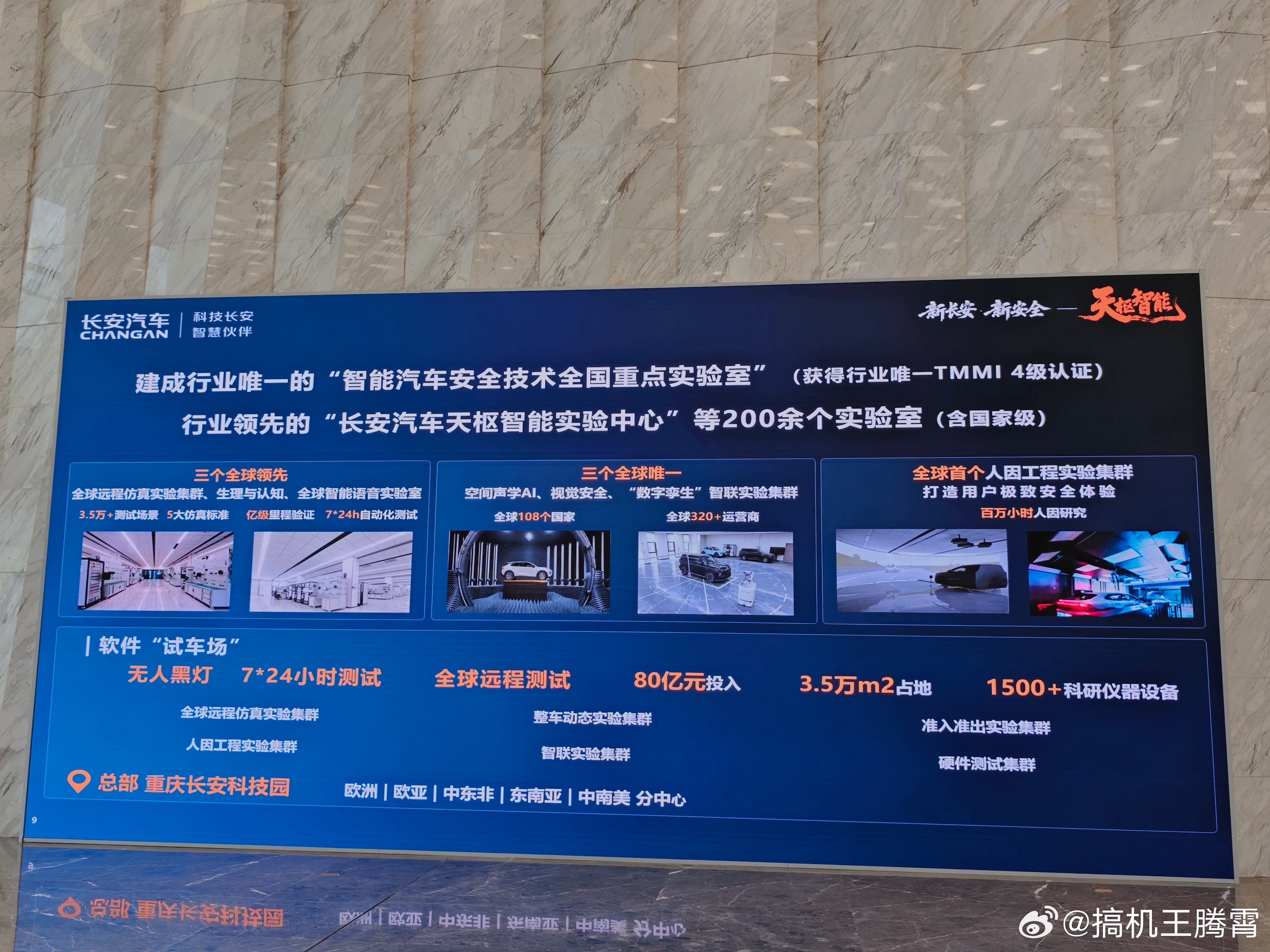长安建了行业唯一智能汽车安全技术全国重点实验室,可以实现7×24h全球“黑灯”远程测试,投了80亿元。2017年的时候,长安发布香格里拉计划,就是为了研发电驱总成,直至现在,达成了百万台量产规模,“北斗天枢”开启L3级智驾时代。研发中心大厅里面还看到辆概念车,明显有着很多现阶段长安系车上的元素,长安的底蕴还是挺深厚吧深蓝汽车第100万台电驱下线