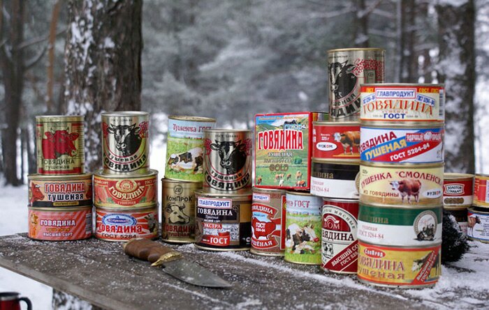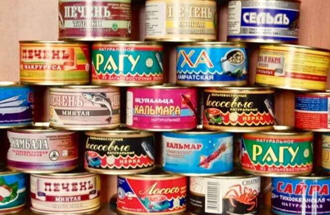 苏联的马口铁罐头也挺多的。玻璃瓶虽然廉价,可回收利用,但玻璃易碎,必须轻拿轻放,所以它不如马口铁罐头。用马口铁皮制成罐头,有高圆形、平圆形、椭圆形、方形、梯形、马蹄形等多种。马口铁罐是使用较多的一种罐头容器。 马口铁盒与玻璃瓶相比,它有下列优点:铁皮柔软,易于弯曲、拉伸、冲压、密封;机械强度大,不易破碎断裂,便于携带、运输和贮藏,破损率小;重量较轻,约为同一容积玻璃瓶重量的1/4-1/5,有利于装卸搬运等。 历史上的苏联也生产过很多马口铁的罐头。苏联生产的马口铁罐头有很多里面装的是好东西啊:除了猪肉牛肉以外,还有鲱鱼、鲭鱼、鳕鱼、鲑鱼、螃蟹,当然还有著名的“鱼子酱”等。🥫🥫🥫