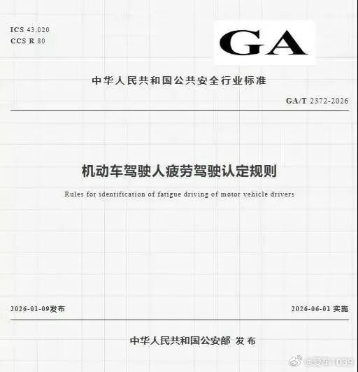 【爱车安全贴士 “疲劳驾驶新规”6月1日执行!覆盖全车型驾驶人,不只看驾驶时长,仨条件满足一个就算!】近日,公安部正式发布《机动车驾驶人疲劳驾驶认定规则》(GA/T 2372-2026),新规将于6月1日全国落地执行。从此告别“只看驾驶时长”的老办法,驾驶行为+生理状态+生活轨迹三维立体判定,只要满足任一条件就算疲劳驾驶,覆盖全车型驾驶人。网页链接