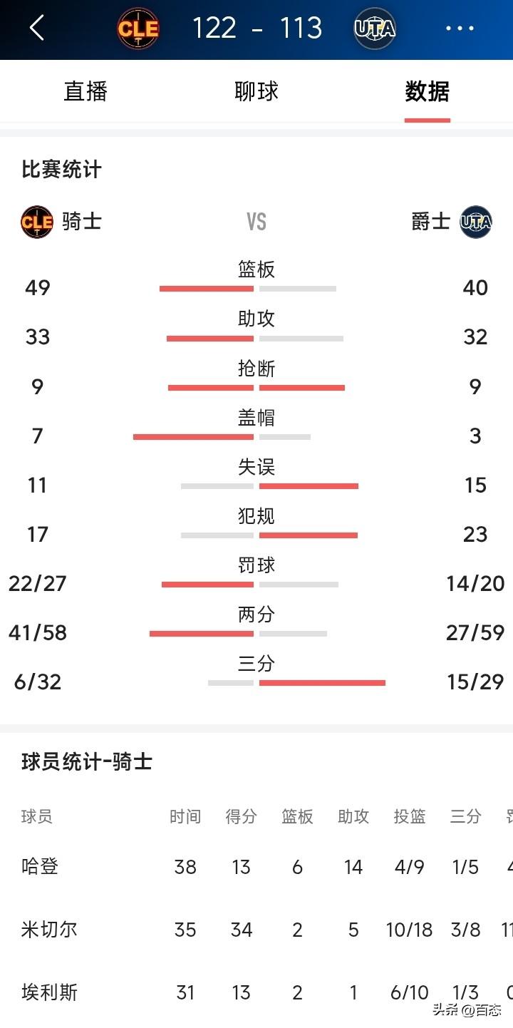 骑士122比113战胜爵士,可以说是没什么悬念的比赛,在缺少很多主力的情况下,骑士还是赢得比较艰难的。哈登这 一场专心助攻,盘活球队,出手只有9次,得分只有13分,哈登放弃了出手权,不得不说哈登已经改变很多,想当 年在火箭的时候,得分跟砍瓜切菜一样,现在年纪大了,对得分没那么多欲望了,能赢球就行。 个人感觉全员健康的骑士还是很强的,有威胁的估计在的东部就只有凯尔特人了。 你们觉得骑士会在东部夺冠吗?