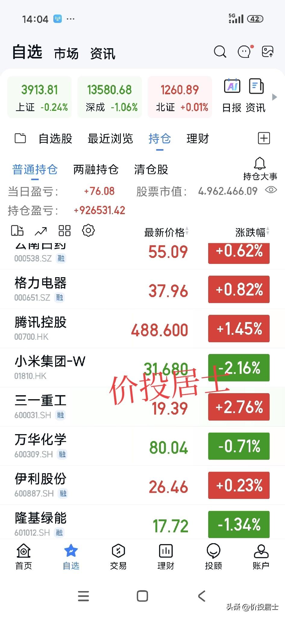 其实这次我的实盘账号自高点回撤也就是16%左右,怎么感觉好些人比我还在意似的[呲牙]我可不是年年妈,给一些人提供亏的没我多的价值情绪,我也不是三爱奶奶,可以幽默的说出把我的棺材本都快亏完了,我的实盘之前最大浮亏过30%左右呢[笑哭]我依然天天有说有笑的! 现在是什么状况,就好像我浮亏或者回撤就应该心情沮丧似的[笑哭]不好意思,我是个乐观的人,虽然没见过大风大浪,也算没吃过猪肉但是看见过猪跑的人。在资本市场里,很短的时间内回撤50%甚至更多,都是非常正常的。 但是我们一定要有信心,在牛市里,任何的回撤都是为了日后更好的上涨!尤其是好公司的股票,是非常优质的资产,是可以不断增值的。 实盘浮亏30%我都不在乎,更别说现在浮赢回撤了[笑哭][祈祷][祈祷][祈祷]暴风雨反正都要来,那还不如让它来的更猛烈一些呢[赞]