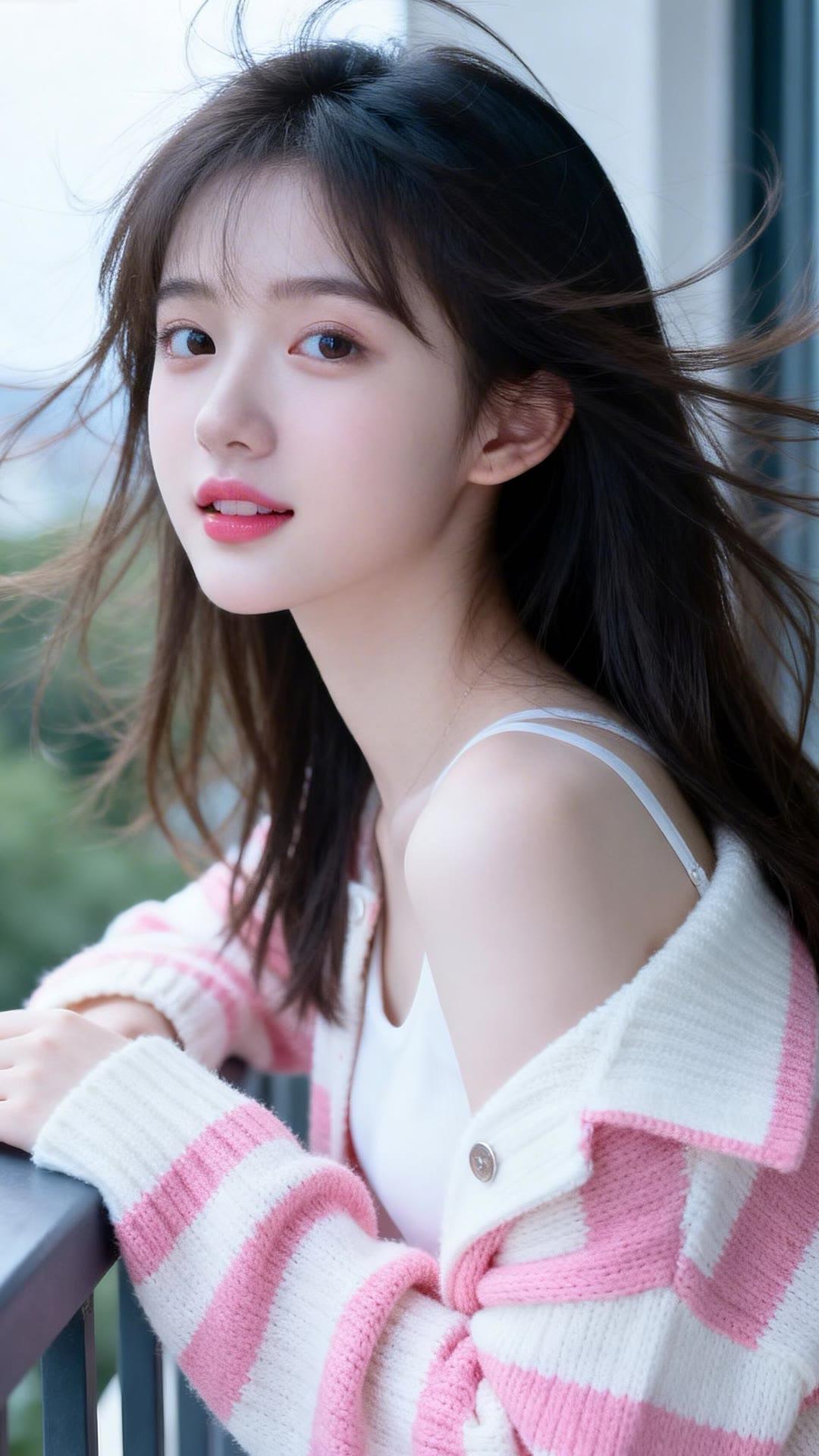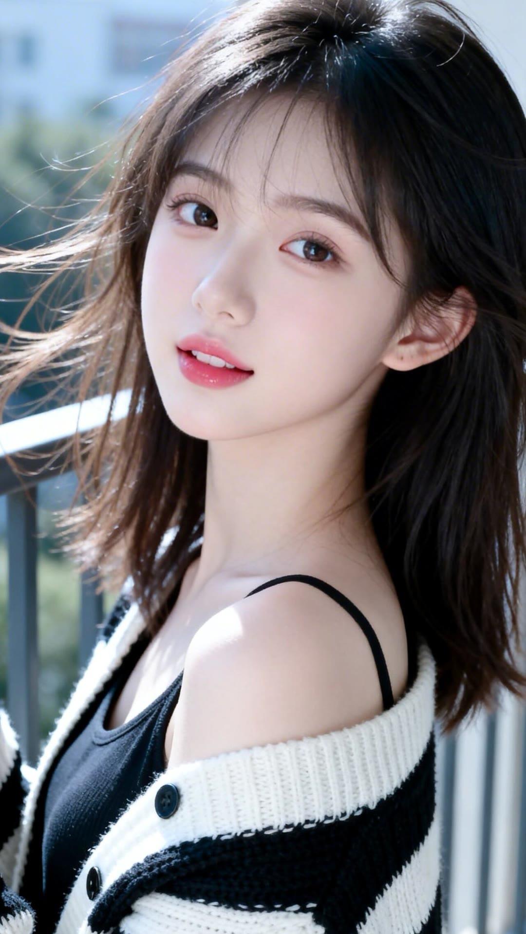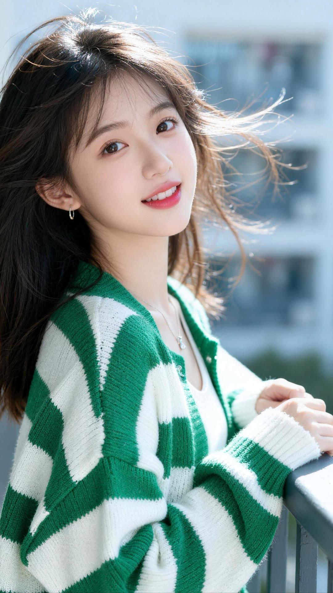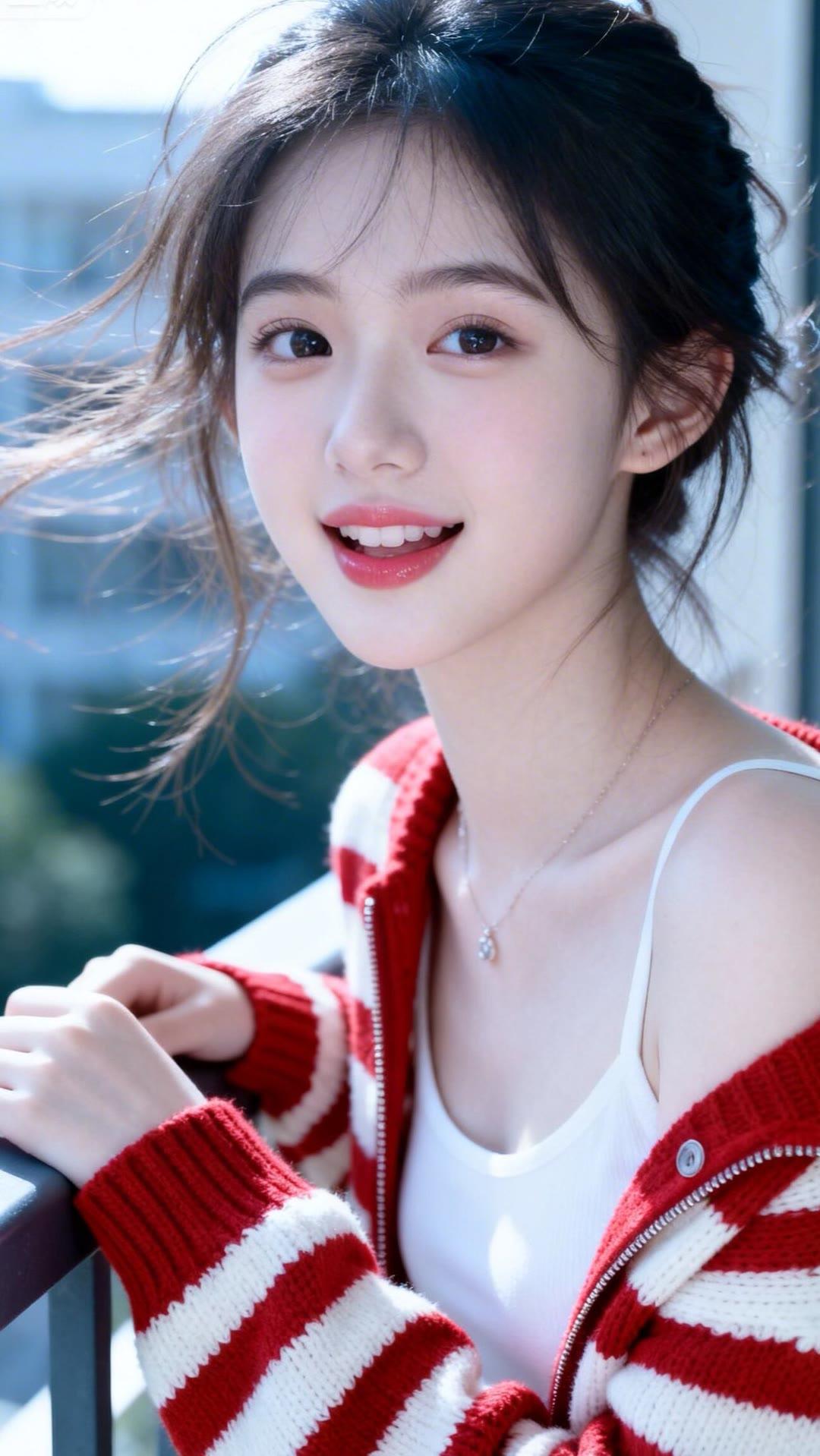 温柔甜美的少女,阳光下的微笑