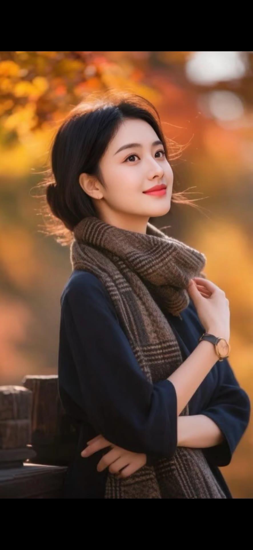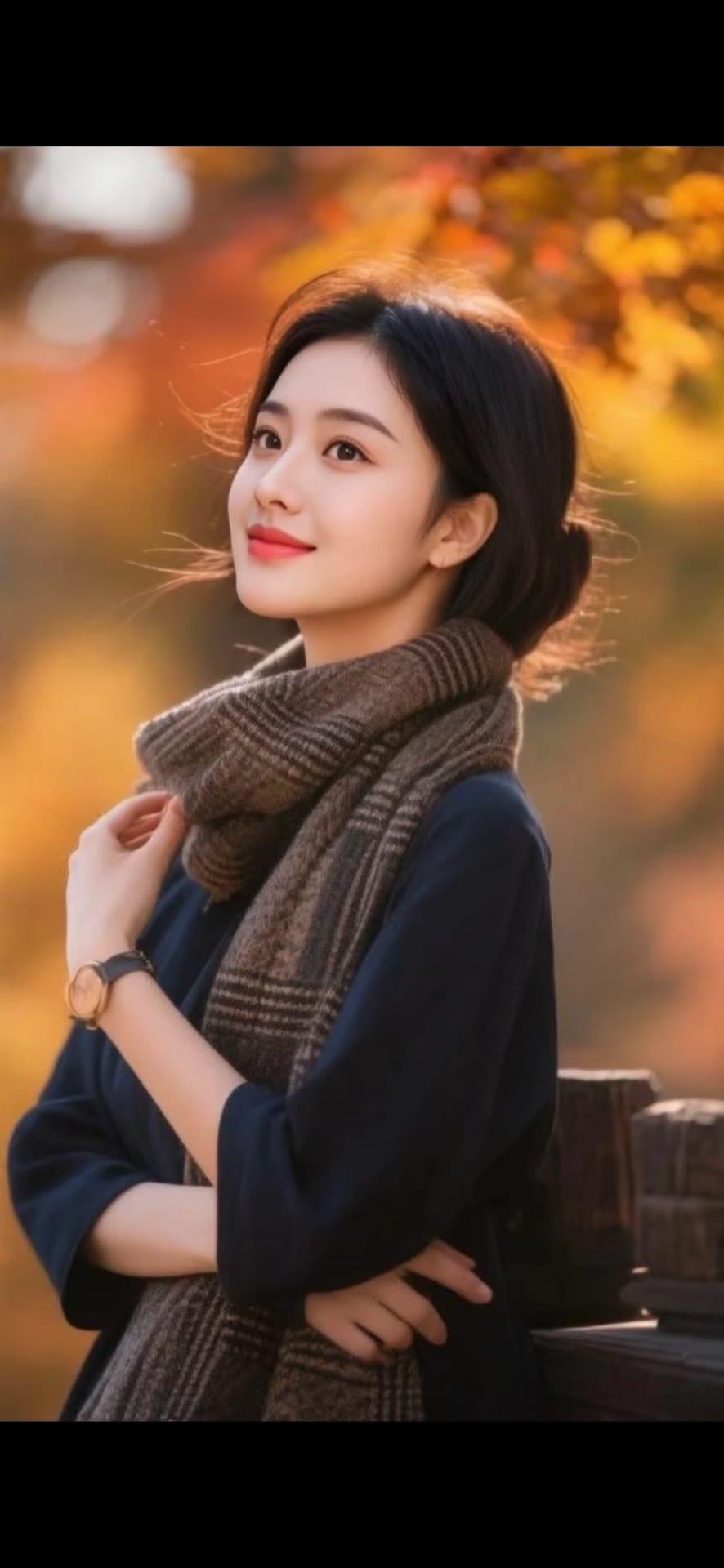 秋日暖阳下,古典旗袍与长发相映成趣,尽显东方韵味。