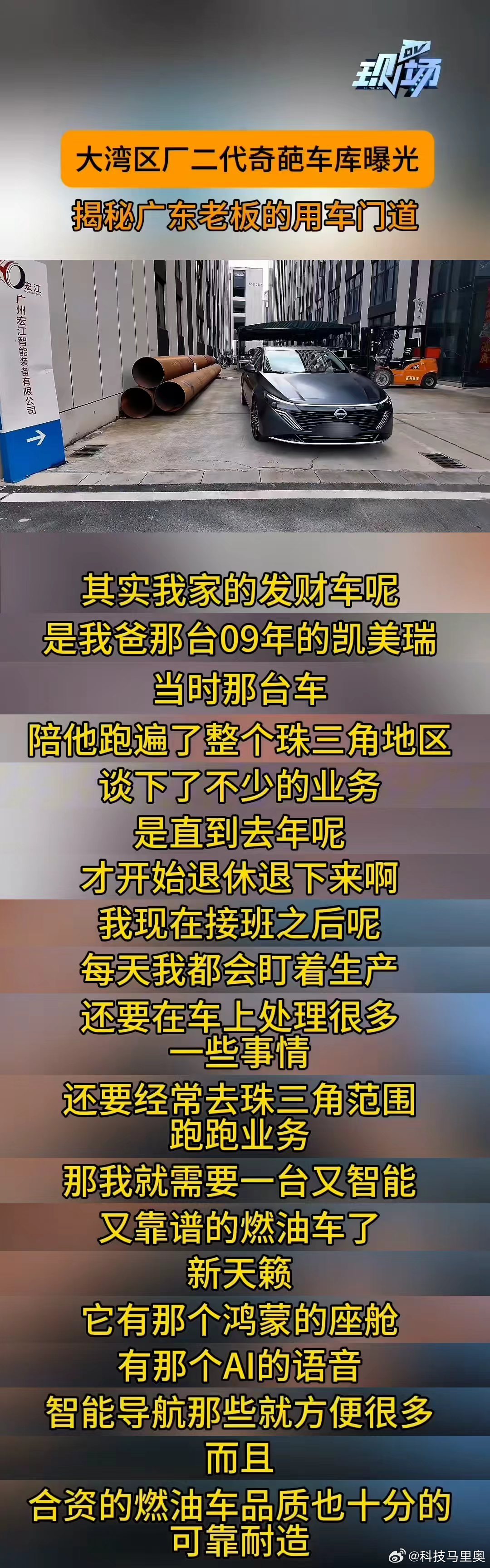 日系B级车能在中国火了二三十年,我想多数南方人都有这样的共识,天籁确实是好开,品质也有保障,中国人骨子里也向往这种安稳,能成为经典主力车型,天籁义不容辞大湾区厂二代奇葩车库曝光现实厂二代回应网上精致人设