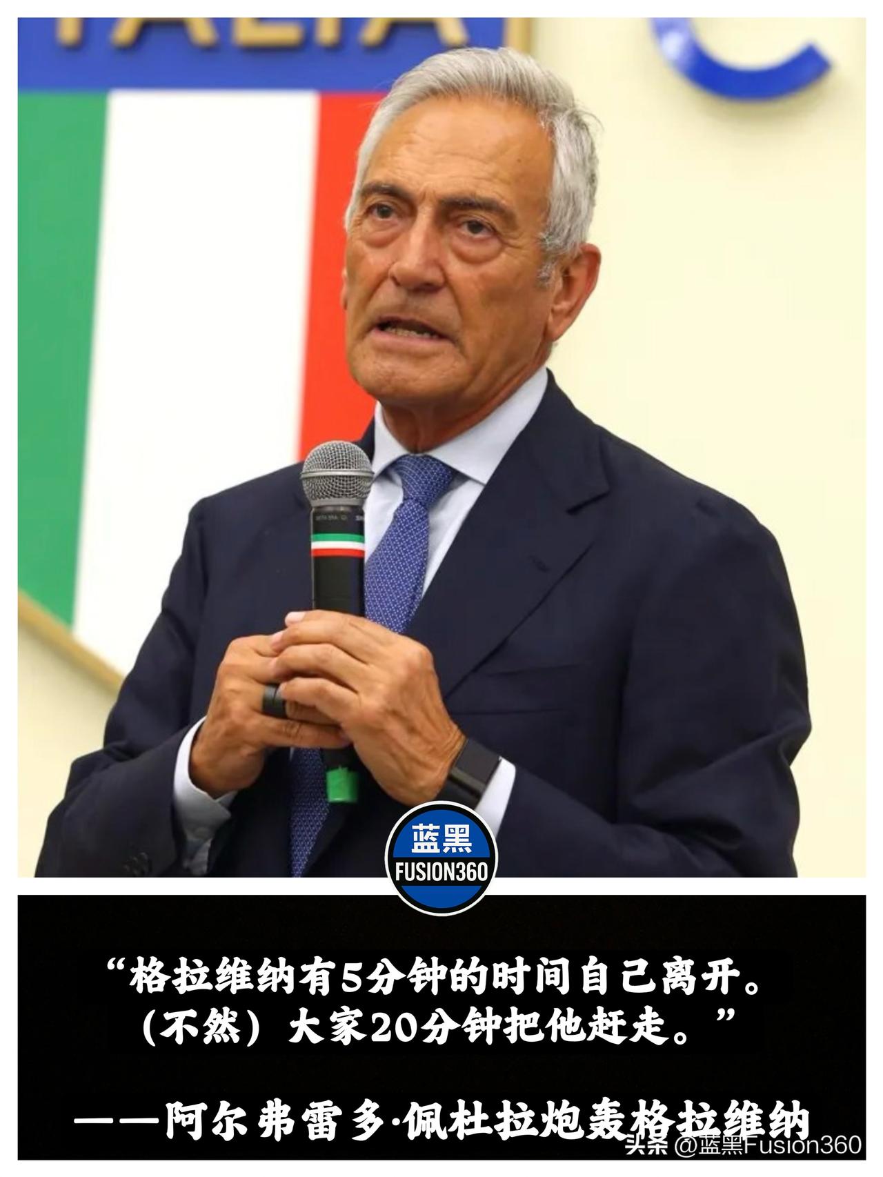 限时5分钟走人!名记炮轰足协掌门人,连续出局暴露系统性问题 名记佩杜拉的怒火彻底点燃了亚平宁半岛。他将矛头直指足协主席格拉维纳,要求对方在5分钟内主动辞职,否则将被强行驱逐。 连续第三次无缘世界杯,已将蓝衣军团的最后的底裤扒光,这也是格拉维纳任内的第二次史诗级溃败。 国家队的连续折戟映射出足球系统的深度腐朽。管理层在青训体系断层与战术迭代上的迟钝,导致球队彻底失去顶层竞争力。国际米兰 💙🖤