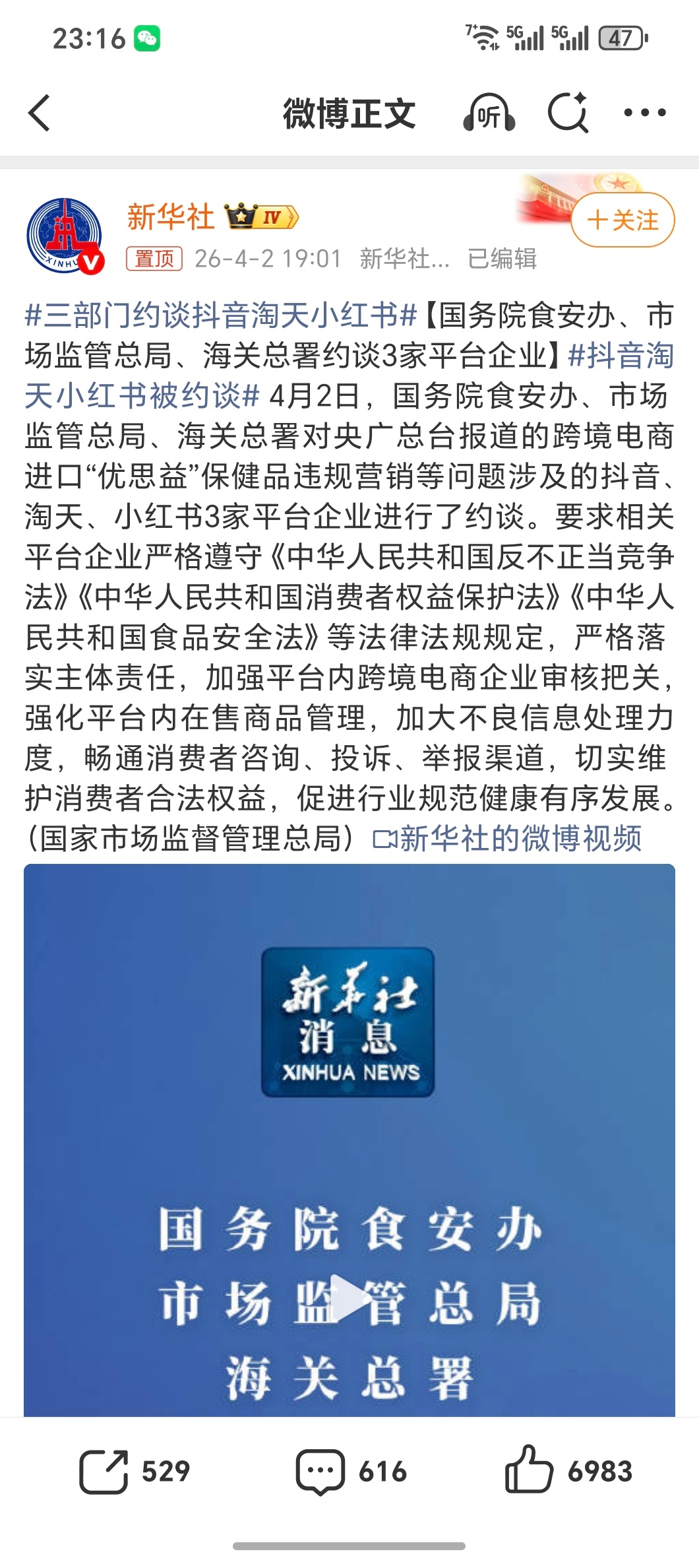 三部门约谈抖音淘天小红书能不能管管平台内容生态的事之前大家都吐槽微博天天夹现在抖音有过之而无不及每个试驾视频必限流辛辛苦苦拍的视频赚个车马费没必要对我们这么狠吧阿抖