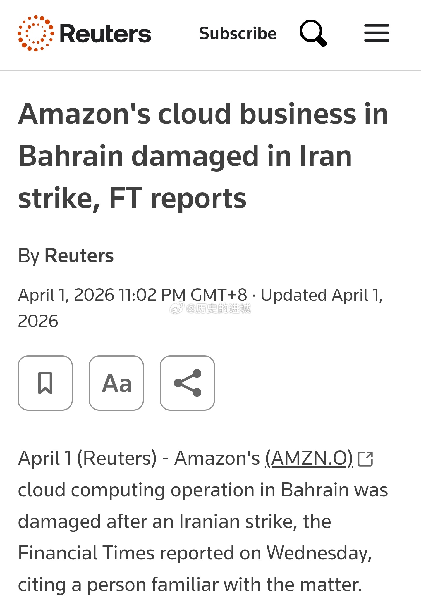 伊朗标志性大桥遭袭路透社引述FT报道称,伊朗今天袭击了美国亚马逊网络服务公司位于巴林的数据中心。据媒体报道,袭击发生后,事发地点燃起大火。