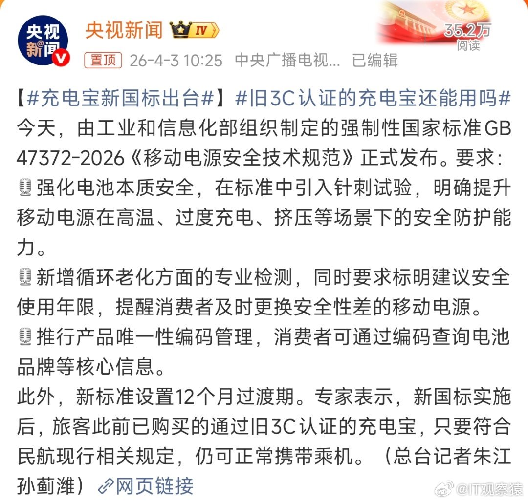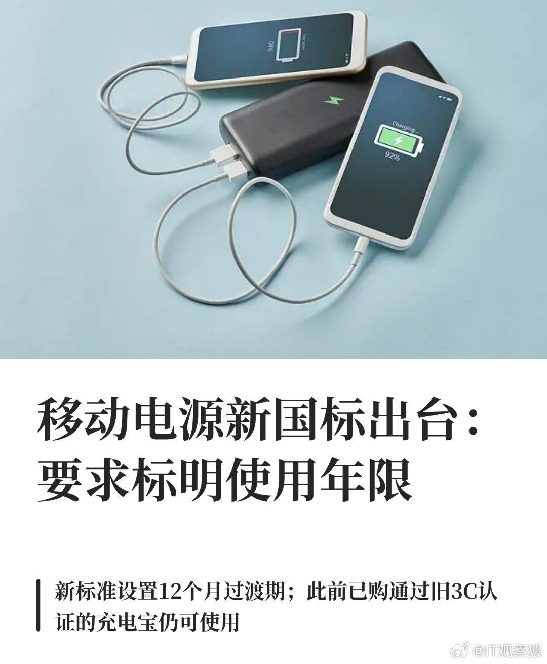 充电宝新国标出台12个月的过渡期,今年厂商应该会生产新的充电宝,12个月之后老款充电宝就都不能用了。