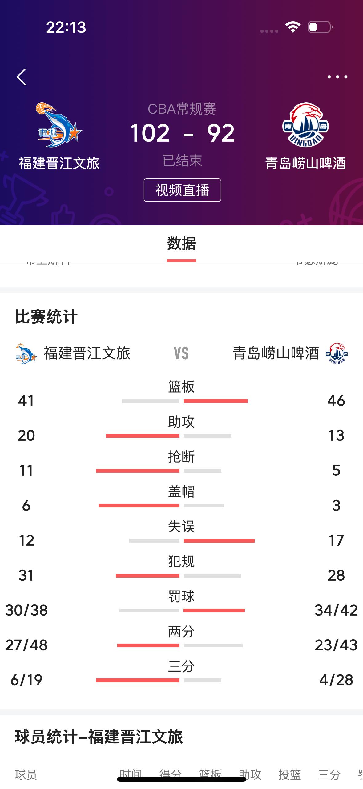 这场比赛的裁判太牛逼了!两支球队罚球一共罚球80次呀! 在刚刚结束的CBA常规赛福建晋江文旅主场迎战青岛崂山啤酒男篮的比赛中,最终福建队以102比92取得了胜利✌️! 但是这场比赛打了还差20分钟就打了3个小时。 而且两支球队的火药味越来越浓! 青岛队的主教练刘维伟多次对裁判表示不满,也是吃到了技术犯规!