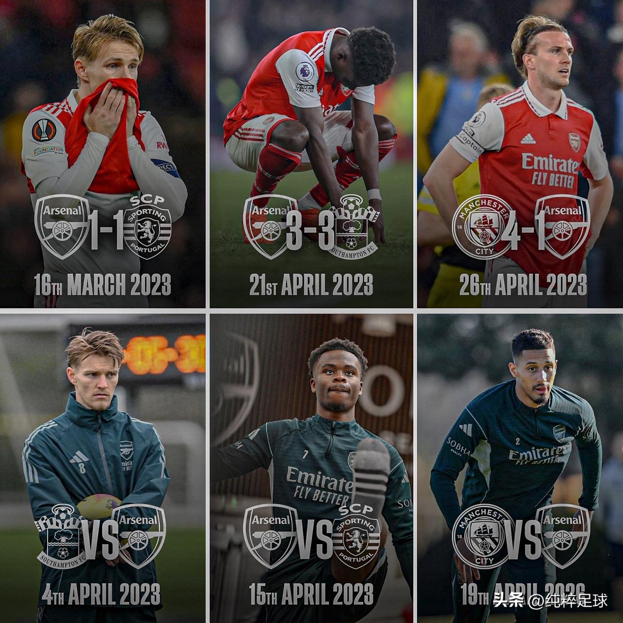 历史就是这么吊诡,像是不断地自我重复。 2023 年,阿森纳在欧联杯点球大战中负于葡萄牙体育,随后在主场 3-3 战平降级球队南安普顿,紧接着在伊蒂哈德球场 1-4 惨败,彻底断送了枪手夺得英超冠军的希望。 2026年,阿森纳将在两周内再次面对同样的三个对手,这将再次决定他们本赛季的成败。 足总杯、欧冠和英超联赛的冠军头衔都将在此一决高下。 阿森纳是复仇成功完成救赎,还是再次陷入失败的怪圈无法自拔,将很快见分晓。