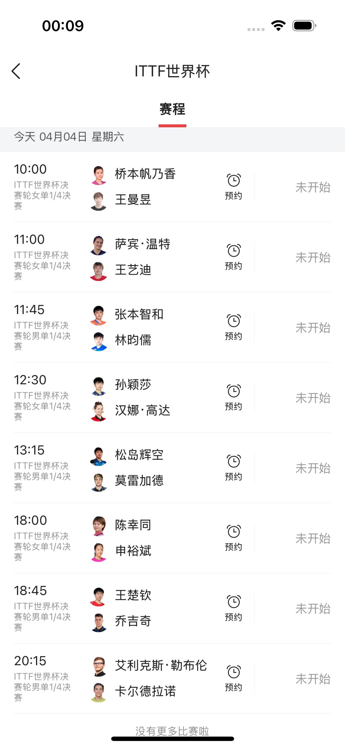 今天是4月4日,国际乒联澳门单打世界杯男女单打四分之一决赛开打了! 今天一共有八场比赛,男子单打八强比赛中只有中国选手王楚钦一人,女子单打还有四名中国选手分别是孙颖莎、王曼昱、王艺迪、陈幸同。 衷心希望,今天参加四分之一决赛的五名中国选手全部取得胜利✌️!