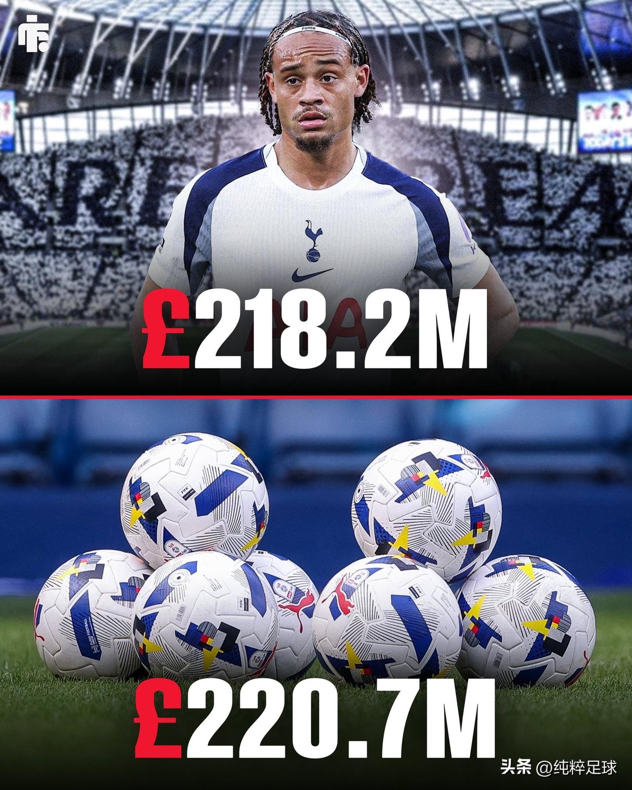 总有人总是说曼城的冠军就是花钱买来的,是个主教练就能拿到冠军。红魔的例子就不说了,热刺过去一个赛季的投入产出反差之大就能清楚说明事实并非如此。 热刺在去年夏季和2026年1月份转会窗口期总的引援花费为2.18亿英镑,几乎等同于整个英冠所有球队同期的花费(2.2亿英镑),结果是他们现在深处保级泥淖,下赛季倒是可以争取下英冠的冠军。