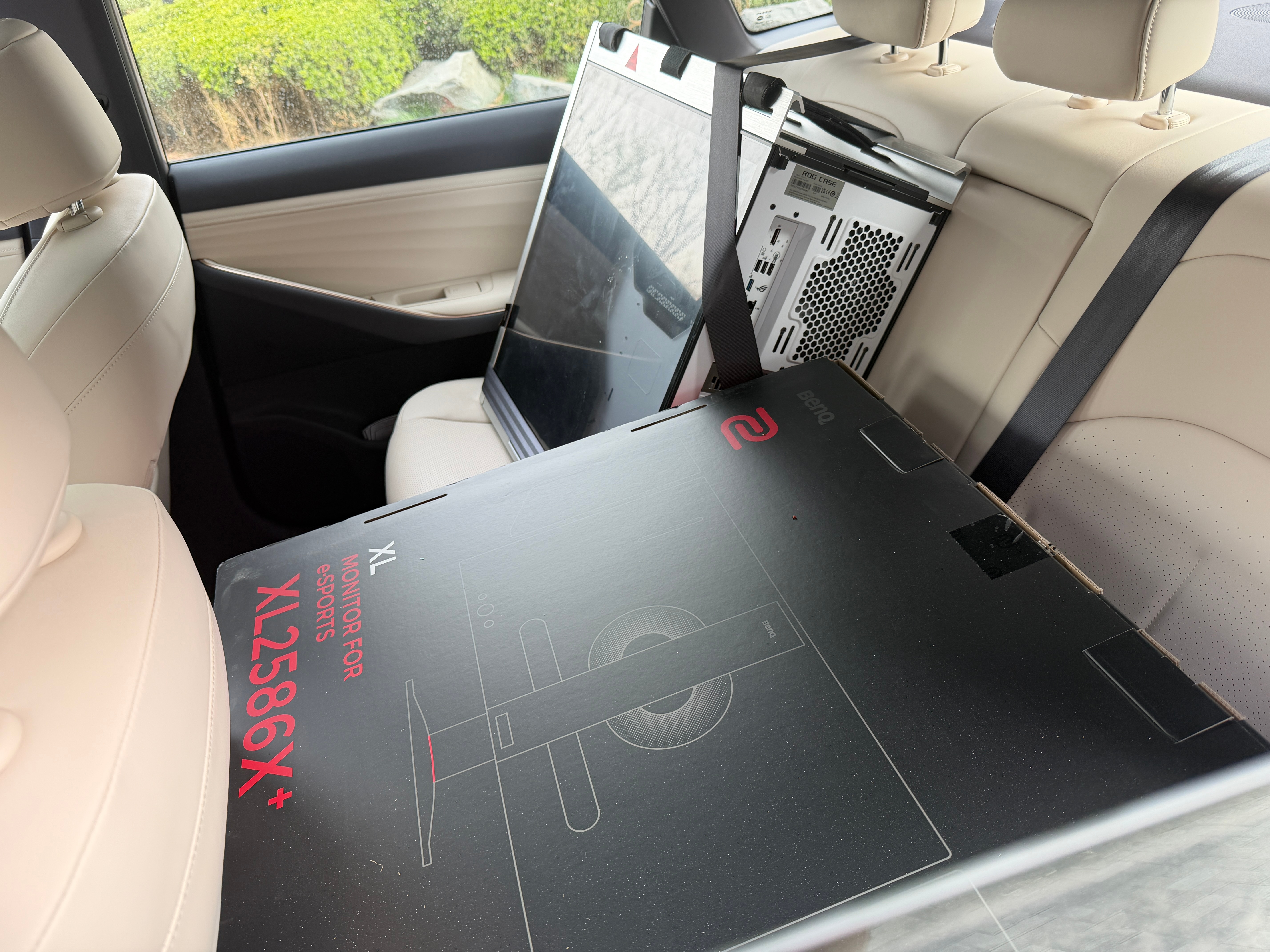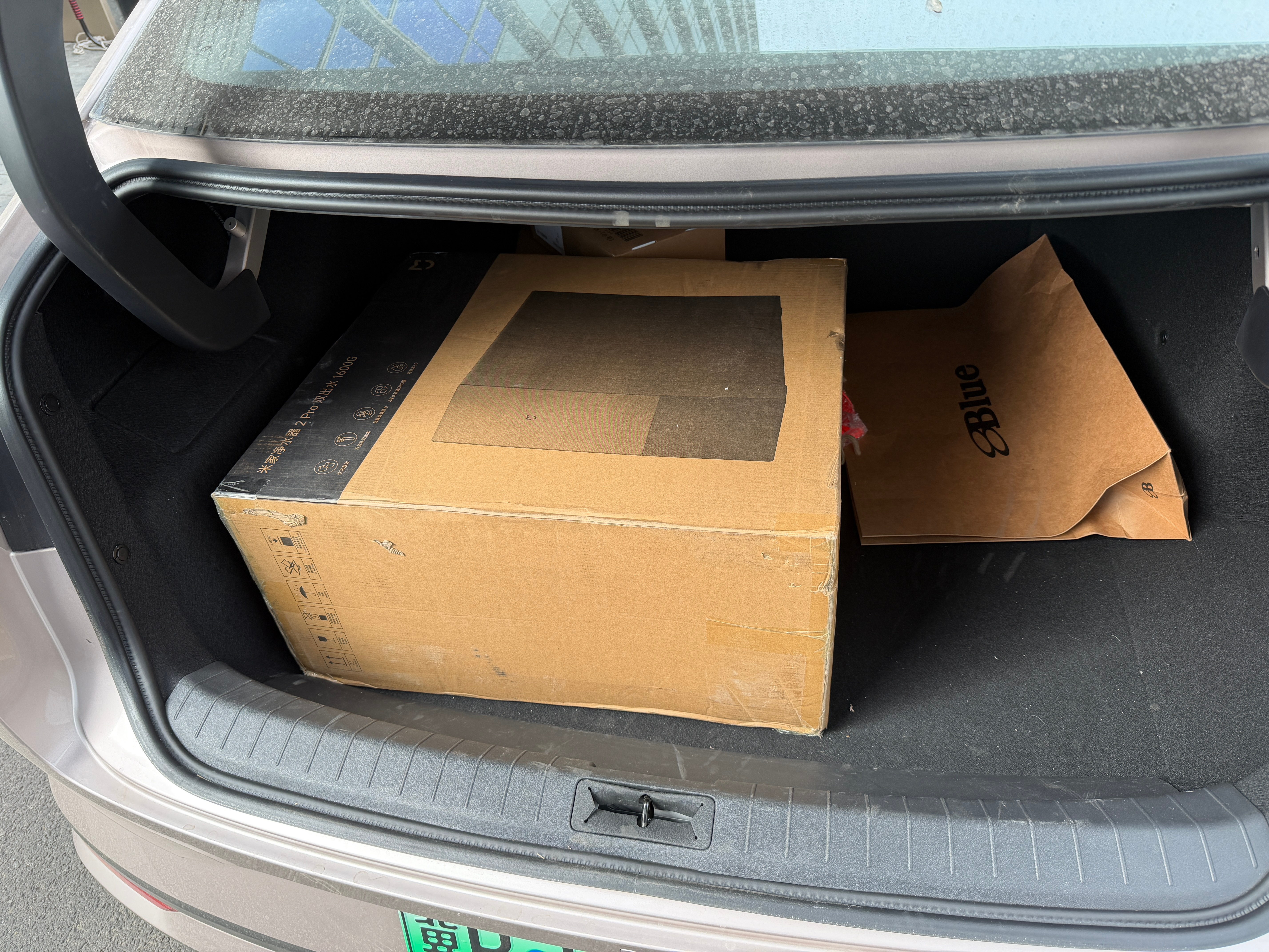 二排放了我的电脑主机+显示器,后备箱还装了一个米家净水器2 Pro双出水版。