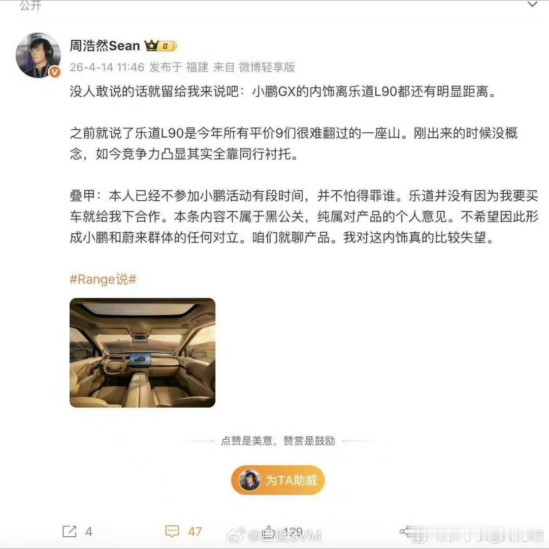 等正式发布了,如果有人喜欢拉扯去比,我也都可以出来个完整的好好比一比。如果有人非要比,那我可真要一项一项详细客观比下去了,而且就不用L90了,因为确实真不是一个取向的,更不是一个价位的。。。。得换更好一点的车型去比了。
