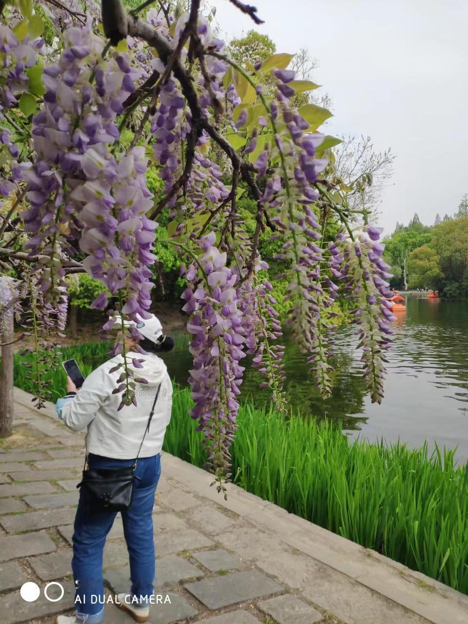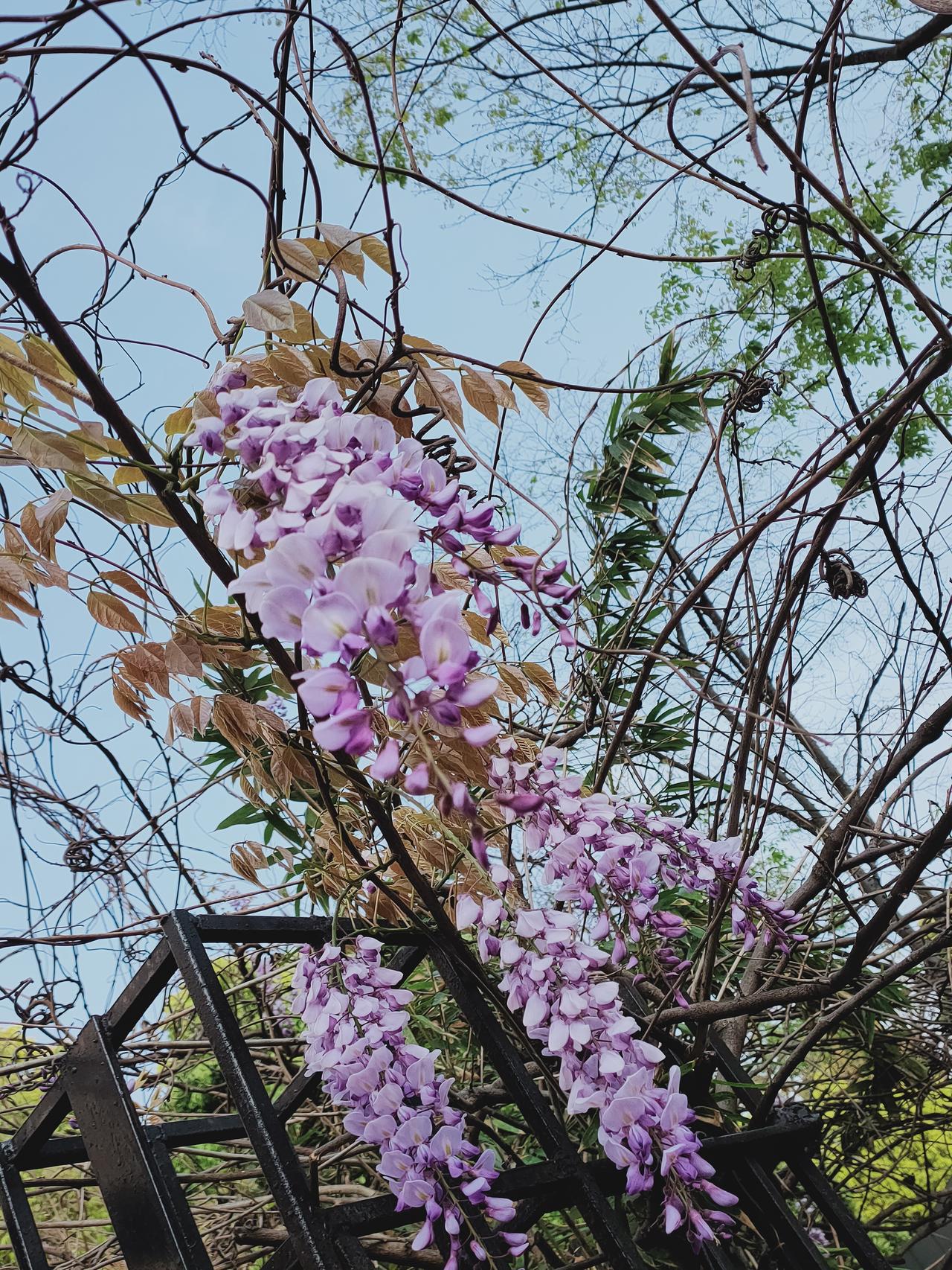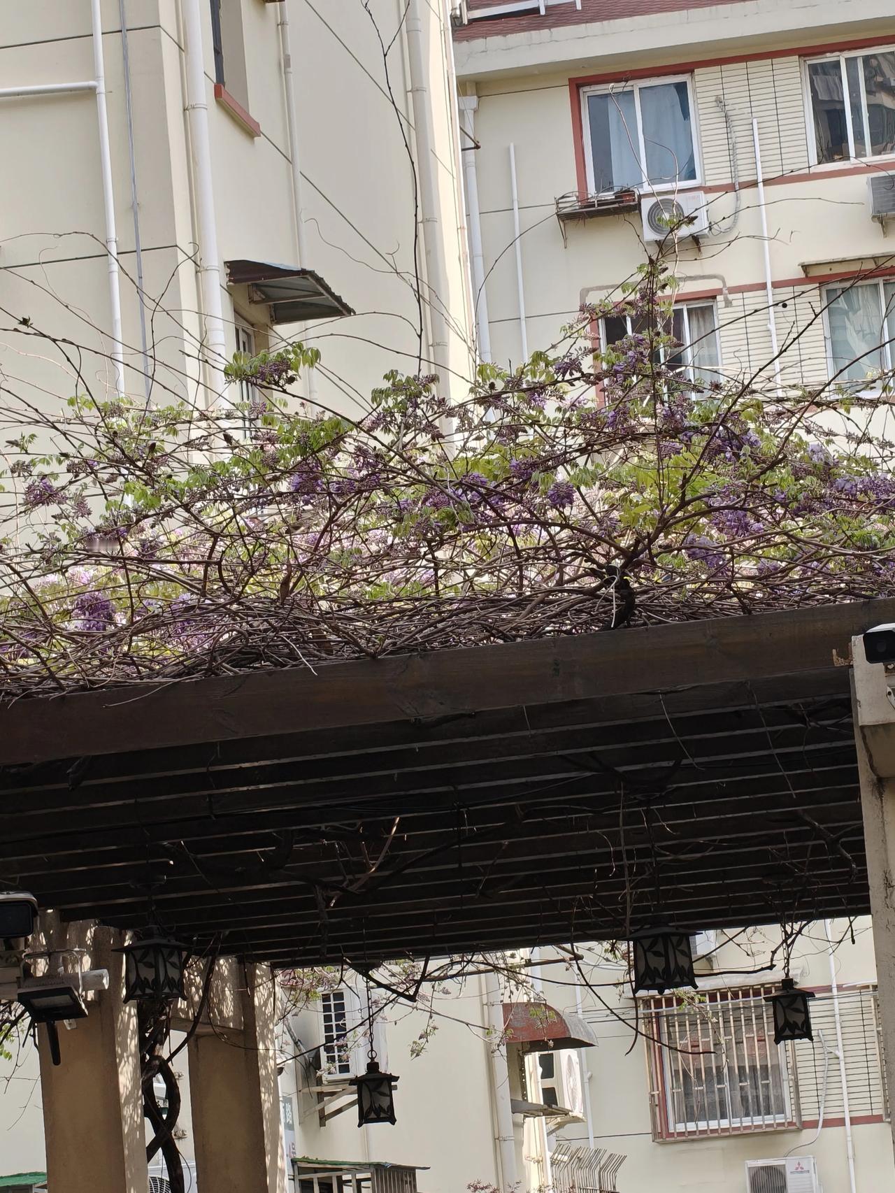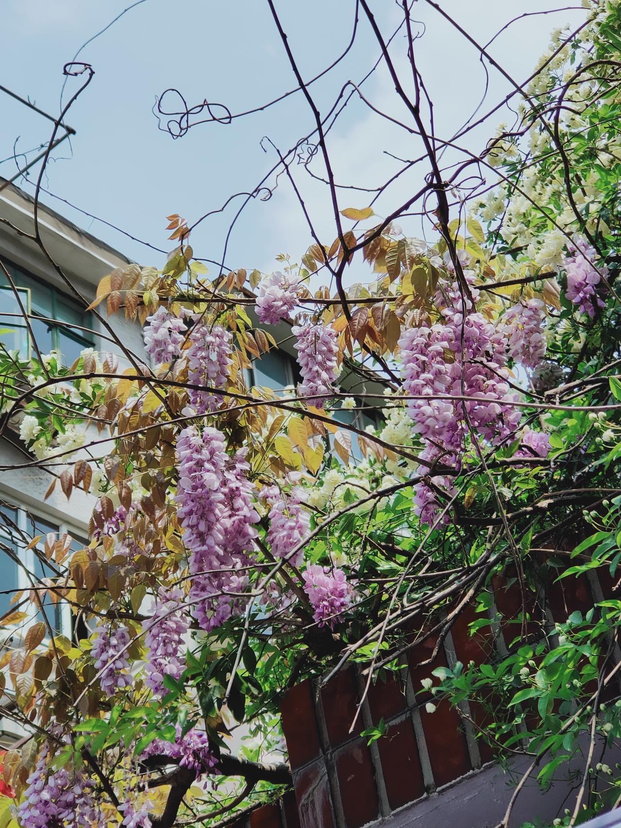 一串串紫藤花像一串串晶莹剔透的大葡萄,挂满枝头,仿佛一座紫色的宫殿 (以葡萄为喻,形象地描绘出紫藤花串的饱满与晶莹,展现出其美丽与壮观,让人感受到紫藤花的魅力。) 漂亮紫藤花随手拍实景图分享!