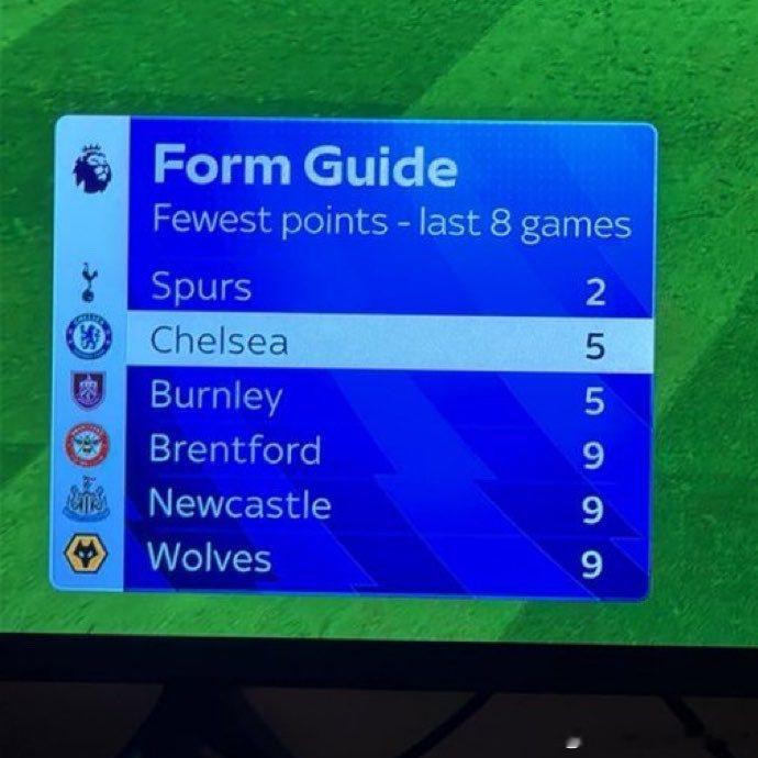 但是榜单是.....过去8轮英超得分最少的球队