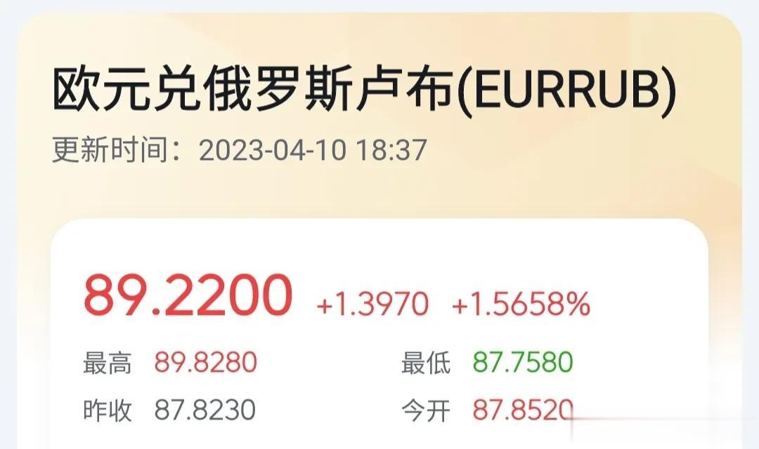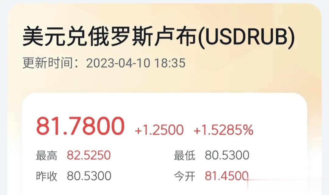 俄乌冲突以来卢布持续不稳定,对外币汇率持续下跌,战争就是货币的风向标。 2014年以前,1美元兑换30卢布,2022年底前60卢布才能换到1美元,截至今天4月10日,81.78卢布换1美元,货币贬值了14.8%。89.22卢布兑1欧元对欧元贬值17.7%。11.89卢布兑换1元人民币,卢布对人民币也贬值17.8%。圣彼得堡居民排队兑换美金。 俄乌战争以来卢布加速贬值,国内物价飞涨,与战前相比,日用品上涨30-50%,进口商品价格上涨100-200%,真可谓是今时不同往日,战争就是国力的粉碎机,中国有句俗话,“盛世的古董、乱世的黄金”。