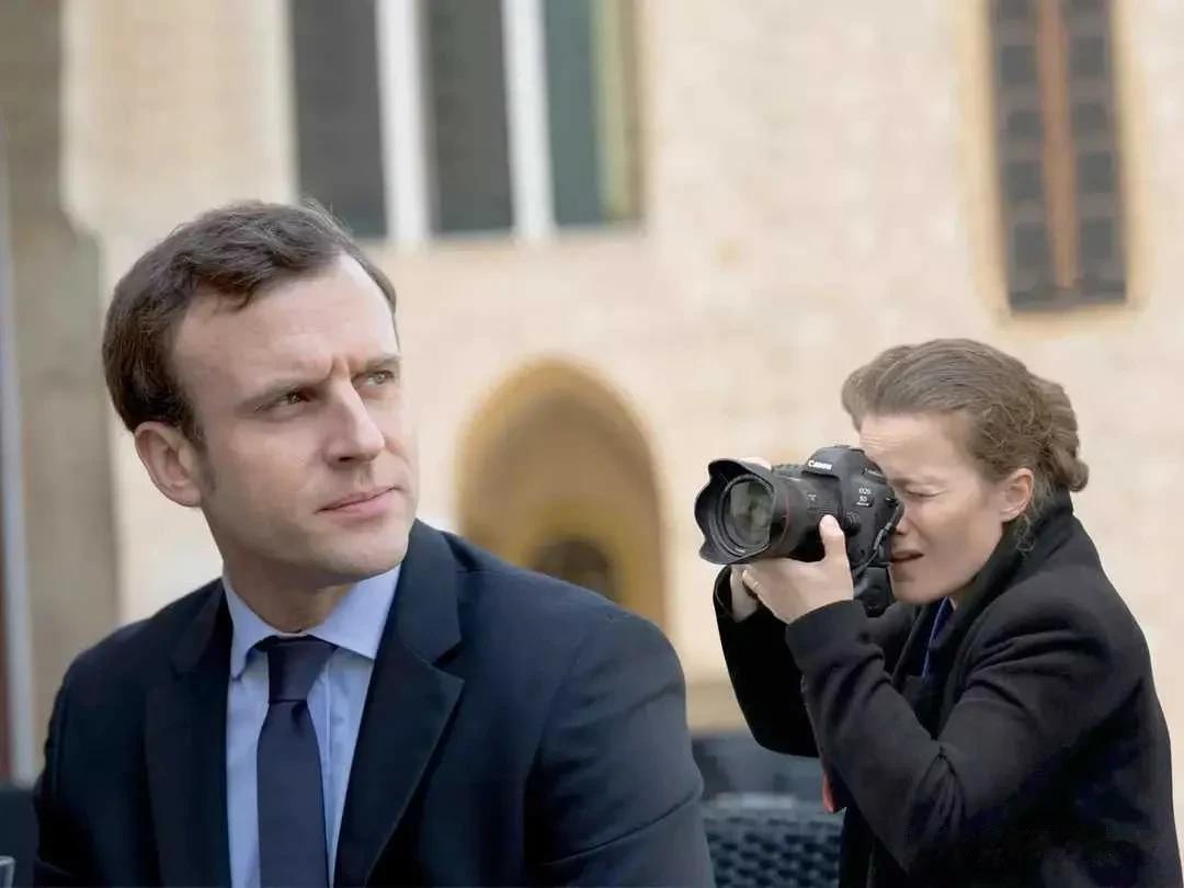 这张马克龙下飞机非常有力量感的照片出自年青有为的女御用摄影师,Soazig de la Moissonnière,才41岁。这位平时的着装也是比较随意,扛着单反的她,表现出了极强的专业水平。这些照片最近在网上火出圈。 马克龙的一些很有力量感略带沧桑的照片,没想到都是出自于这位美女,以一个女性视角,记录着马克龙的工作和生活的日常点滴。