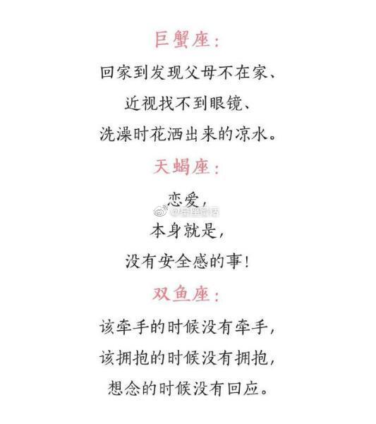 千万不要和双子,双鱼,巨蟹搞暧昧,喜欢你也不直说,不爱你又不咋拒绝,关心你需要你