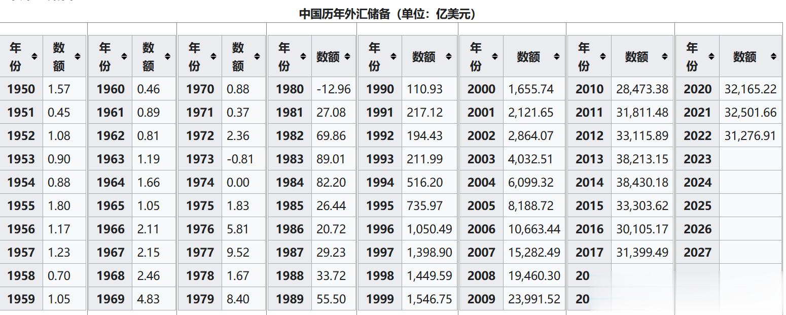 看下面的中国外汇储备。