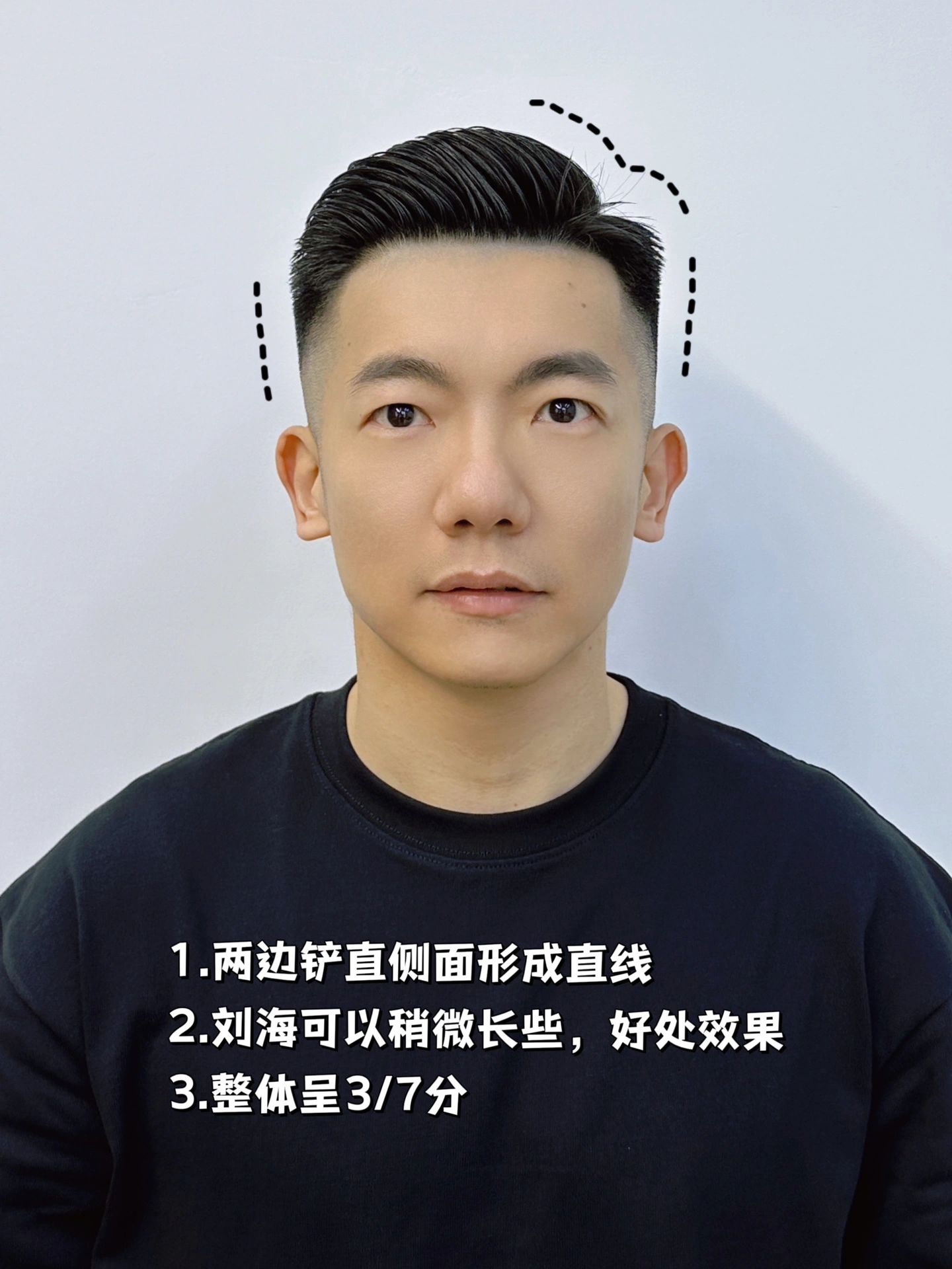 2“三七偏分”偏分造型,不管是二八分还是三七分都会比“清爽短发”造型复杂一点点。