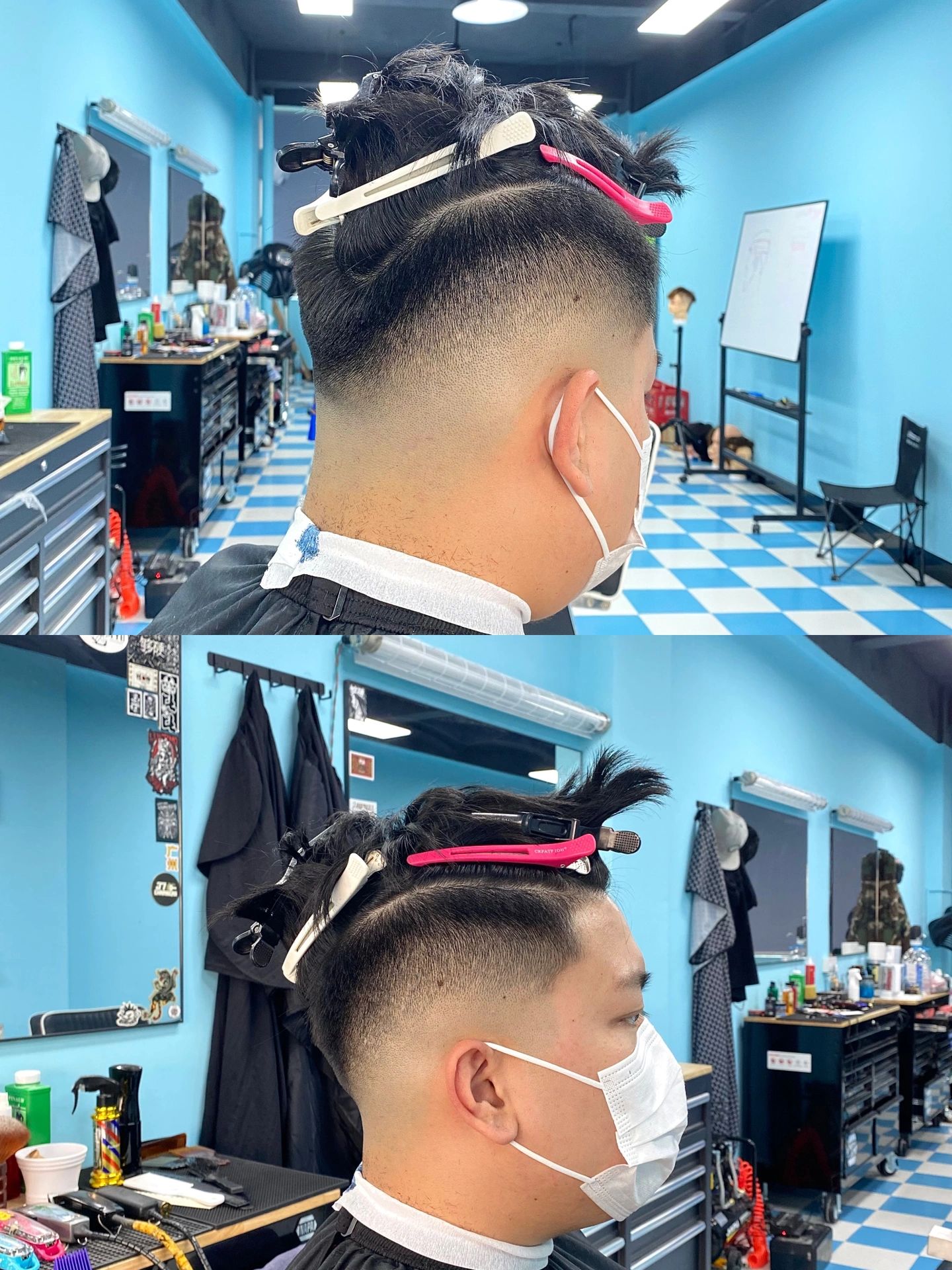 就这样可以直接跟发型师他怎么讲的 图2是我剪完头发的效果 图3首先看自己喜欢两边头发光一点还是不用太光去做适当的渐变我做的是skinmindfade(中渐变)两边底下较光 图4这是我两边剪完呈现的效果 图5头顶这次我剪了短款的前刺两边头发可以稍微长出来一点点这样造型效果会好一点可以参照(asen的造型和美式前刺) 图6是我造型后的效果两边头发可以稍微带一点下来显得脸没有那么胖,额头没有那么高头顶可以稍微凌乱蓬松一点 可以选择去找一些年轻时尚的理发师哟!