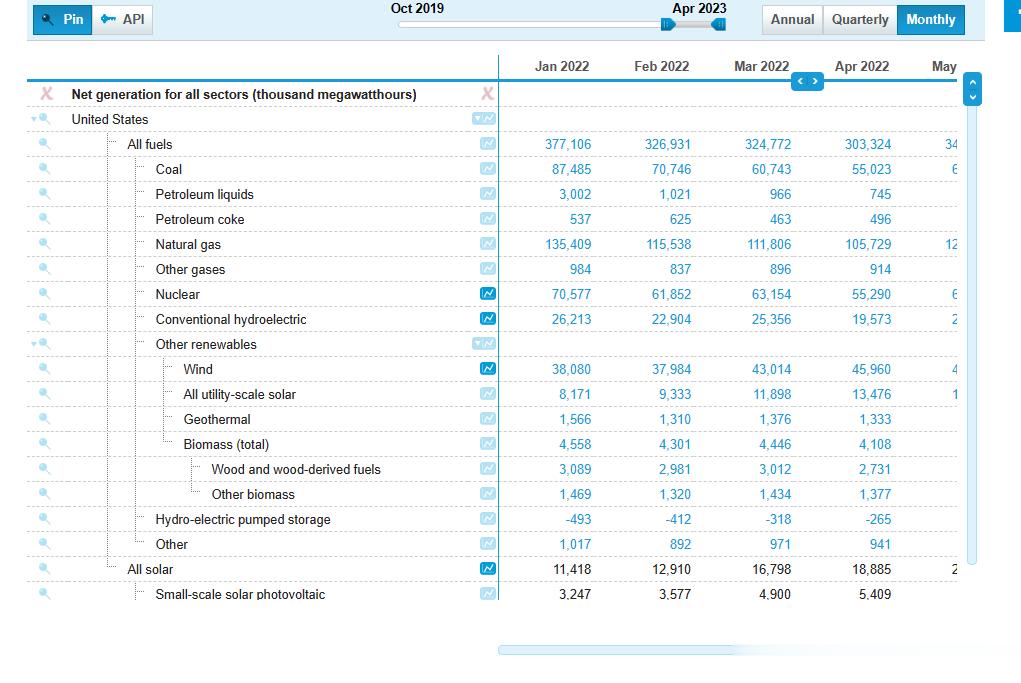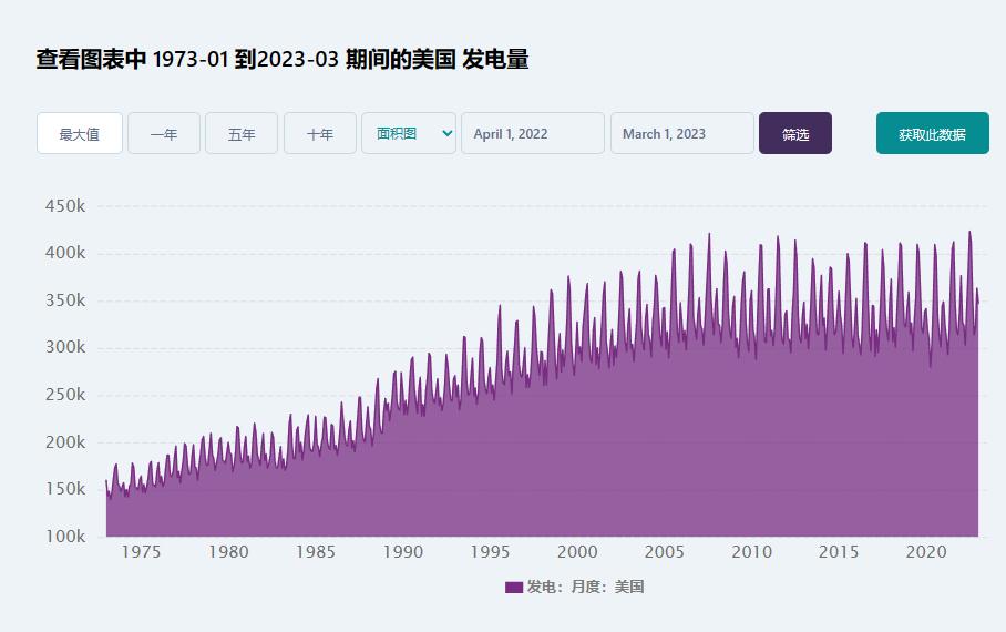 然后又从1973年到今天的发电量对比。