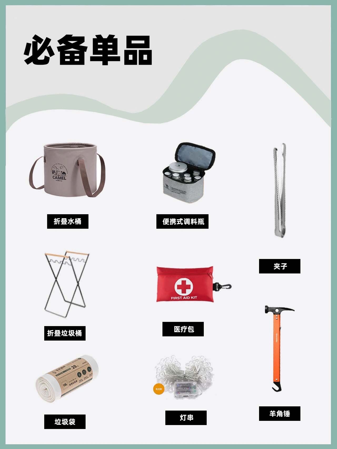 必备单品——缺了很不方便夹子、调味盒、垃圾袋、折叠垃圾桶、羊角锤、氛围灯串、医疗包、折叠水桶