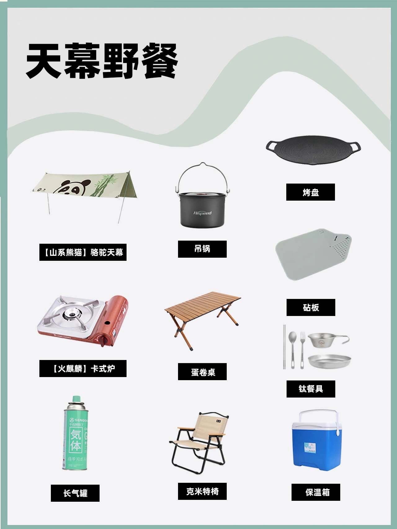 我觉得吧新手可以从不过夜开始慢慢熟悉和了解必须要的东西比如帐篷天幕什么的,一些氛围物品可以慢慢添置,这个过程也是美好的!