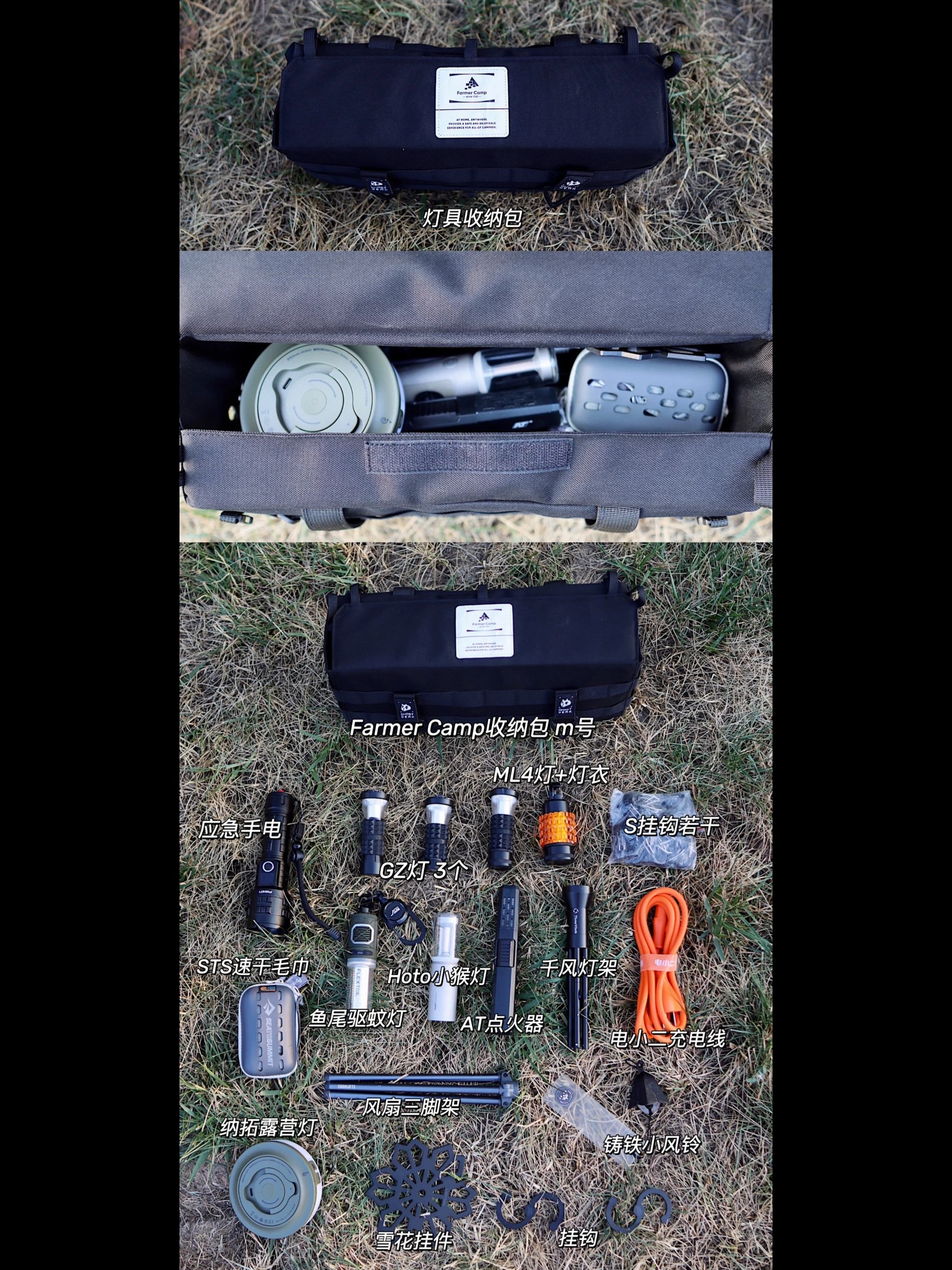 灯具:GoalZero×3ML4+灯衣HOTO小猴工具小猴露营灯品胜应急手电纳拓NexTool纳拓露营灯科勒曼卢米埃尔蜡烛灯+山也至子木质气罐套Soto蜡烛灯+Unit04战术气罐套ICECO驱蚊灯鱼尾FLEXTAIL驱蚊灯生活用品:电小二户外电源100pro电风扇:Calymore600户外风扇音响:MIFA露营音响TANGO户外蓝牙音箱折叠马扎×2折叠垃圾桶折叠脸盆折叠水桶折叠马桶植愈力免洗清洁剂垃圾袋若干纸巾若干、湿巾若干洗漱用品、换洗衣物收纳包:千风收纳包大号折叠收纳包×2FarmerCampM号收纳包。