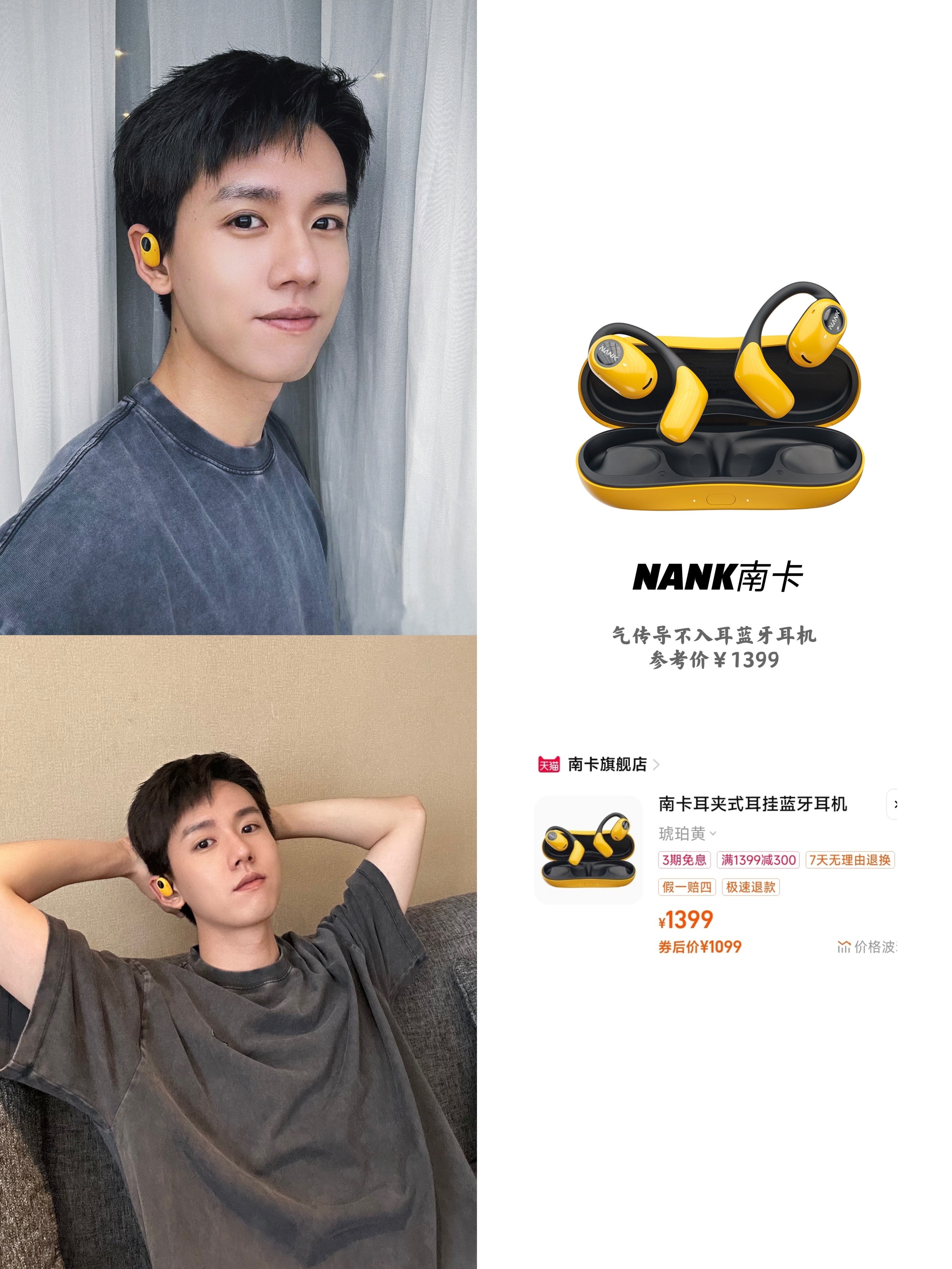 不知道你们是不是跟我一样,入耳式耳机戴的时间长了就会耳朵疼,松动一下吧又怕掉,真的是戴不住!最近我看到张新成戴的这个挂耳式不入耳蓝牙耳机,不仅没有耳朵疼的问题了,还不怕掉!体验感好多了!张耀、张宸逍也都在戴,白色、粉色、黄色三个颜色也还挺好看的,男女生都可以参考!