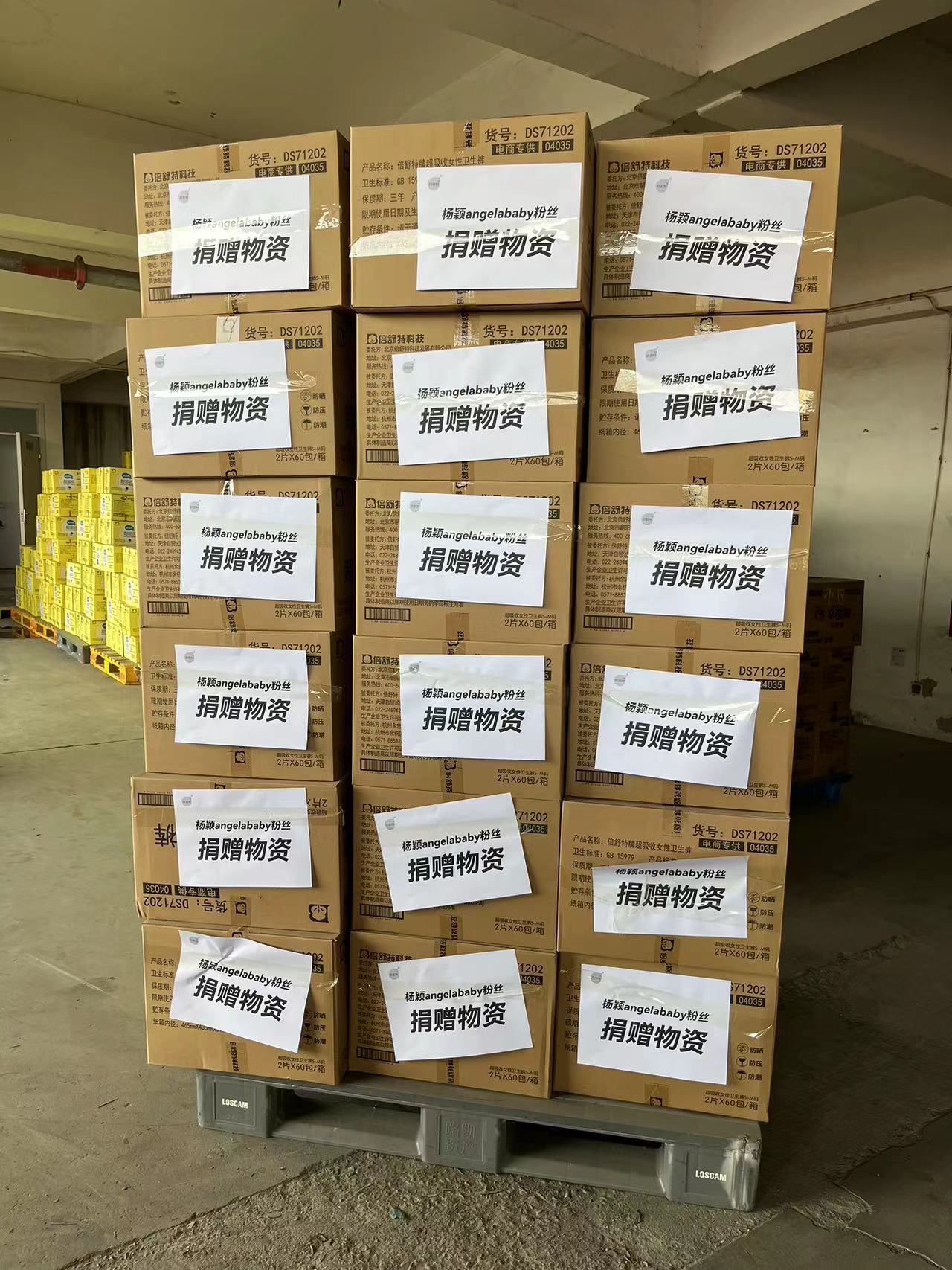 在了解到倍舒特的1:1爱心捐配活动后,后援会以及全体粉丝名义向涿州灾区捐赠的共计2072片卫生巾均已到位。