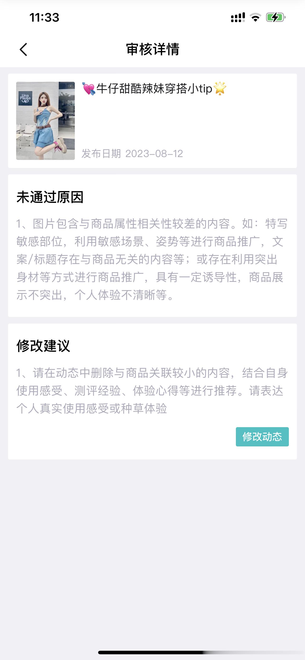本来通过的动态改了两个字和我说我的图有问题