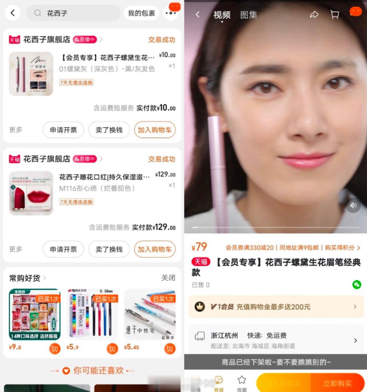 花西子的眉笔以前卖10块,被李带火后卖79块