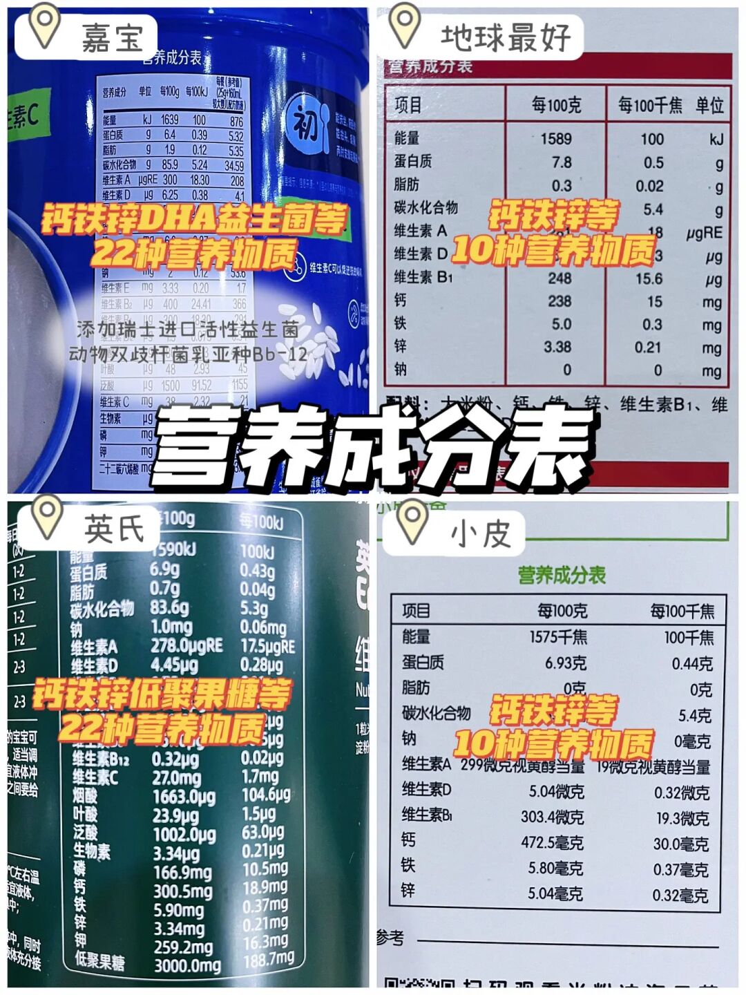 嘉宝:22种,额外添加活性益生菌、DHA等