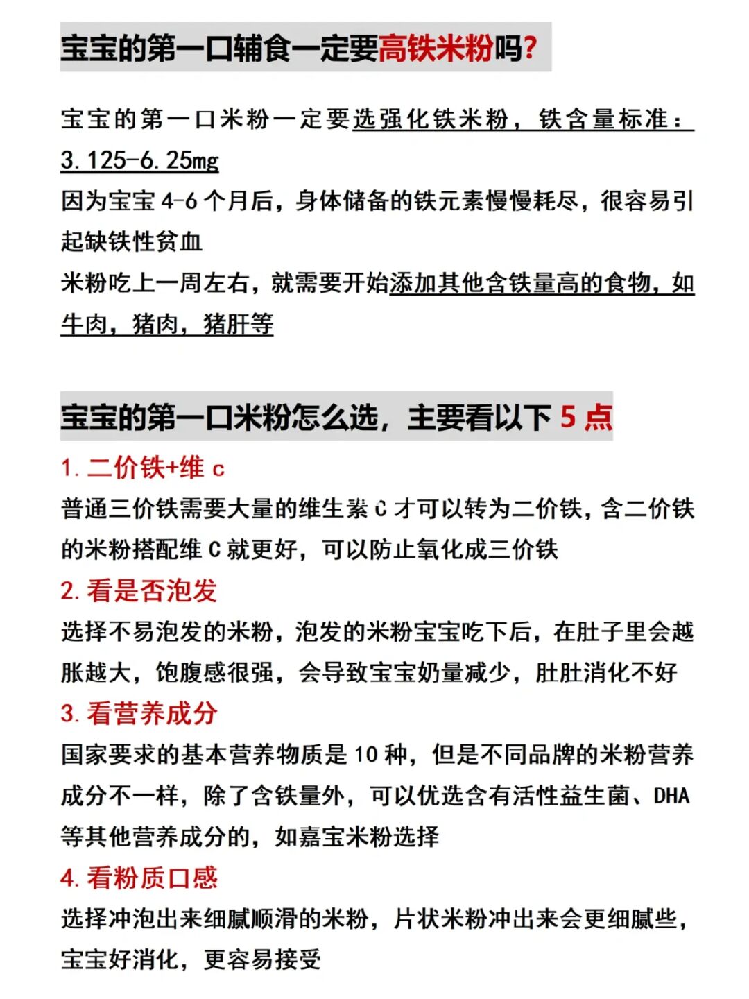 宝宝的第一口米粉一定要选强化铁米粉,铁含量标准:3.125-6.25mg