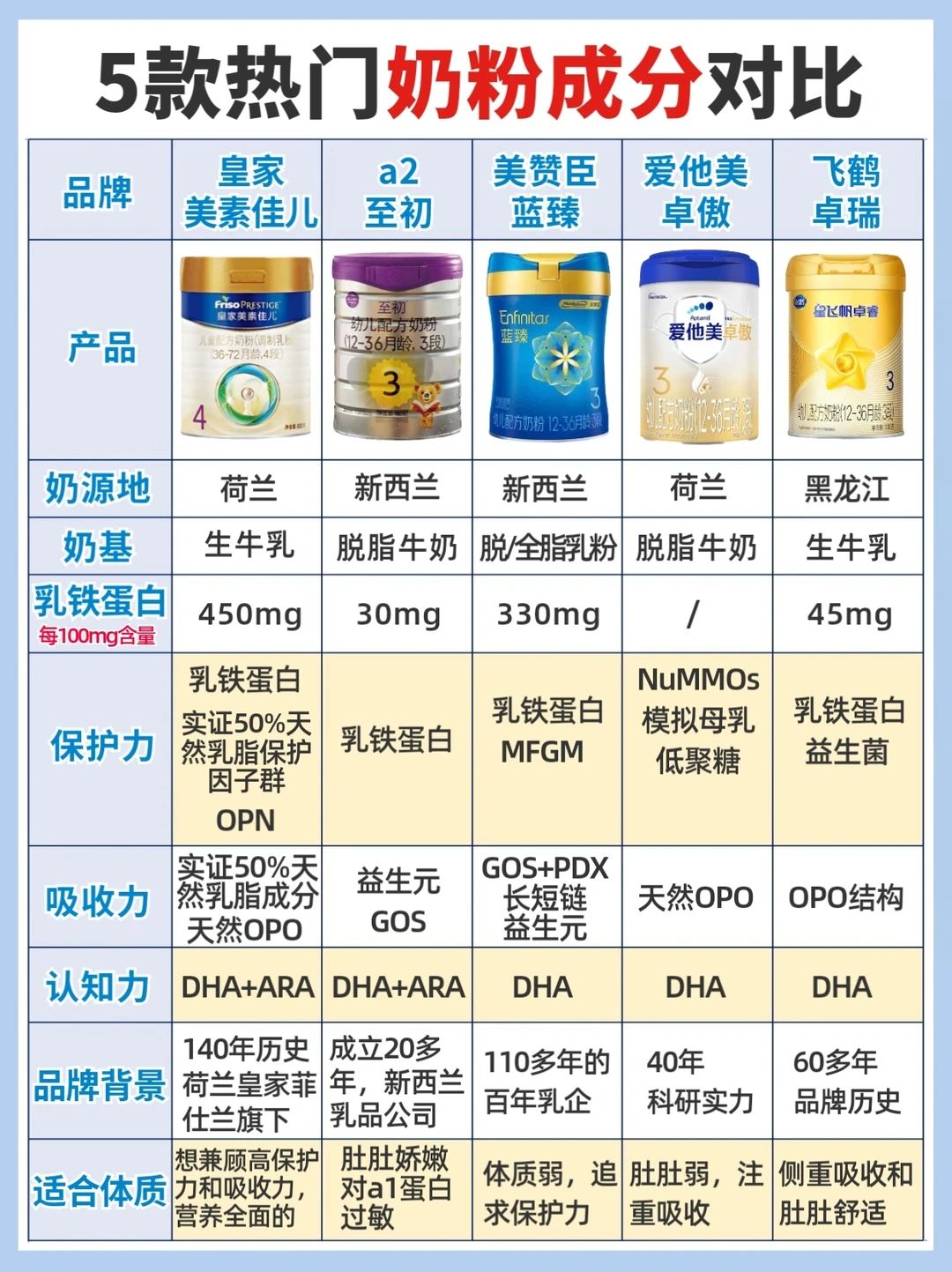 5款奶粉各有各的好处,妈妈根据宝宝体质按需选择,我宝宝喝的是皇家美素佳儿,增强保护力棒棒哒!选对奶粉,带娃真的超省心!